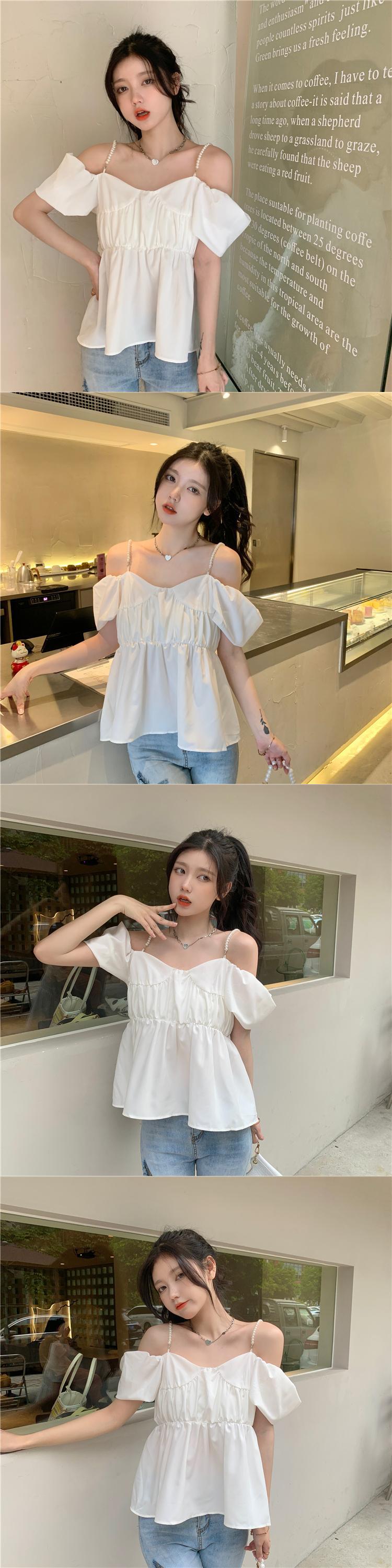 パールシャツ トップス サマールーズ薄手ショートレディース 大人ガーリー スウィート キュート カジュアル 夏物 真珠 クレセントシティ33718233205