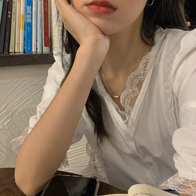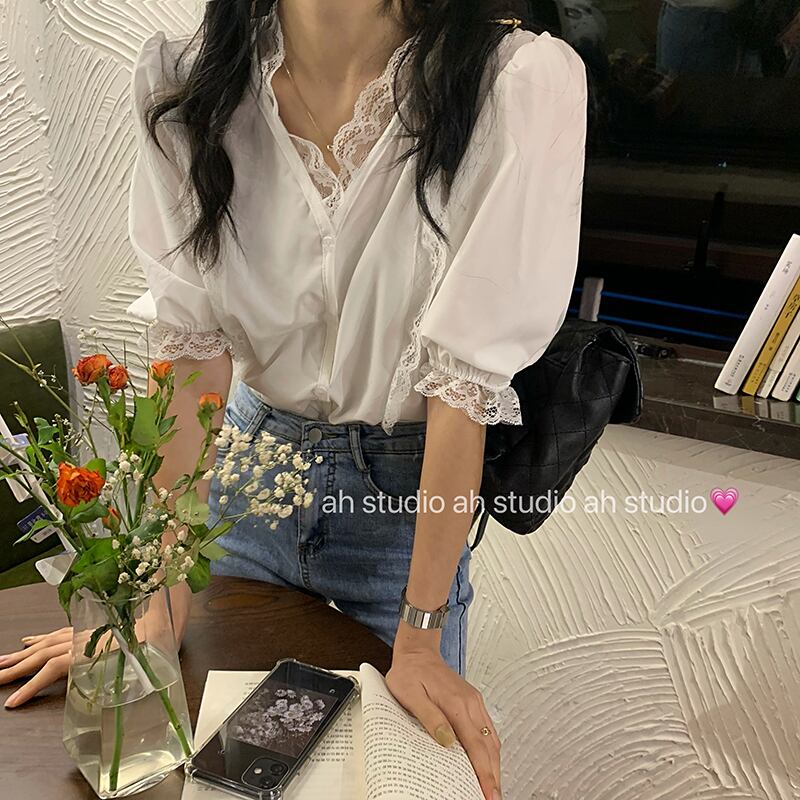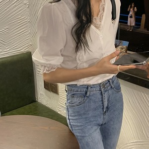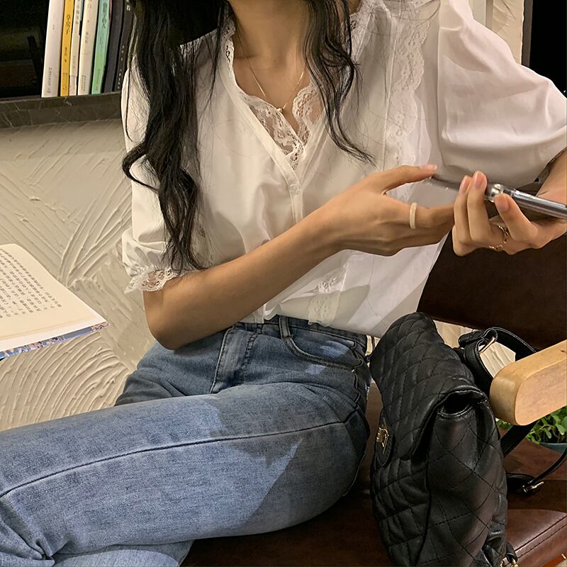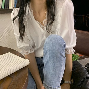 レースVネックシャツ サマートップス ルーズ 夏物 クレセントシティ21956954682