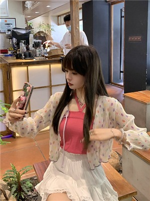 オータムホルタースリム水玉カーディガン 大人ガーリー スウィート キュート カジュアル 秋物 クレセントシティ20859612033
