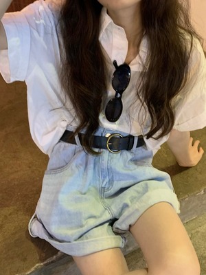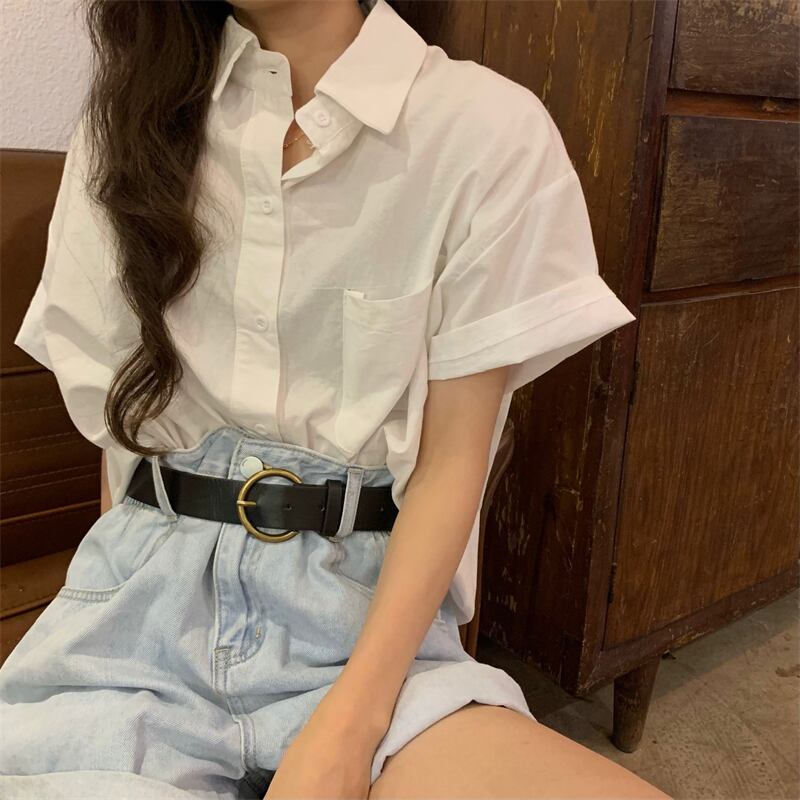 ホワイトシャツ サマーカジュアルルーズ薄手 夏物 クレセントシティ4186494398