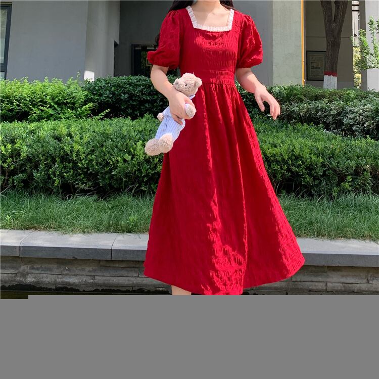 カラードレス サマースリーブスタンダードウェストAラインスカート レトロ 夏物 スクウェア クレセントシティ86894338425