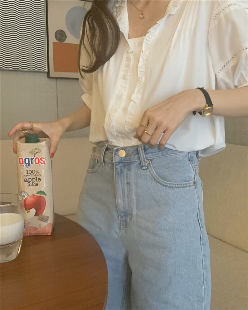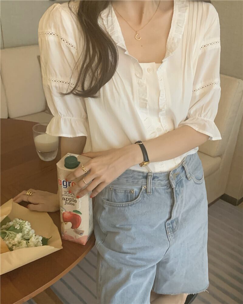 スリーブホワイトシャツ サマーレースルーズスタイルブラウス 大人ガーリー スウィート キュート カジュアル 夏物 クレセントシティ75348450984