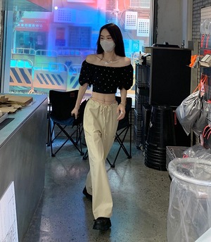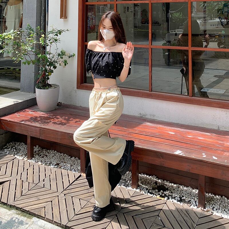 レディースサマーストレッチウェストルーズカジュアルパンツ トップス エラスティック 伸縮 夏物 クレセントシティ9916887249