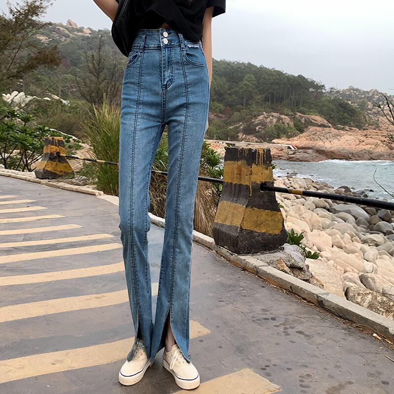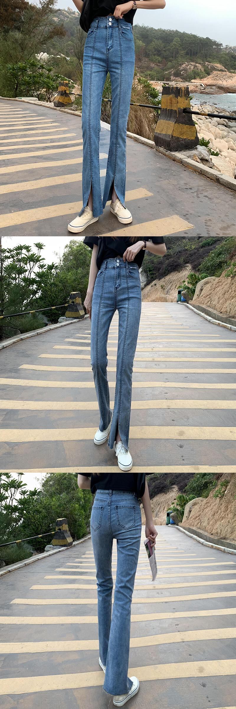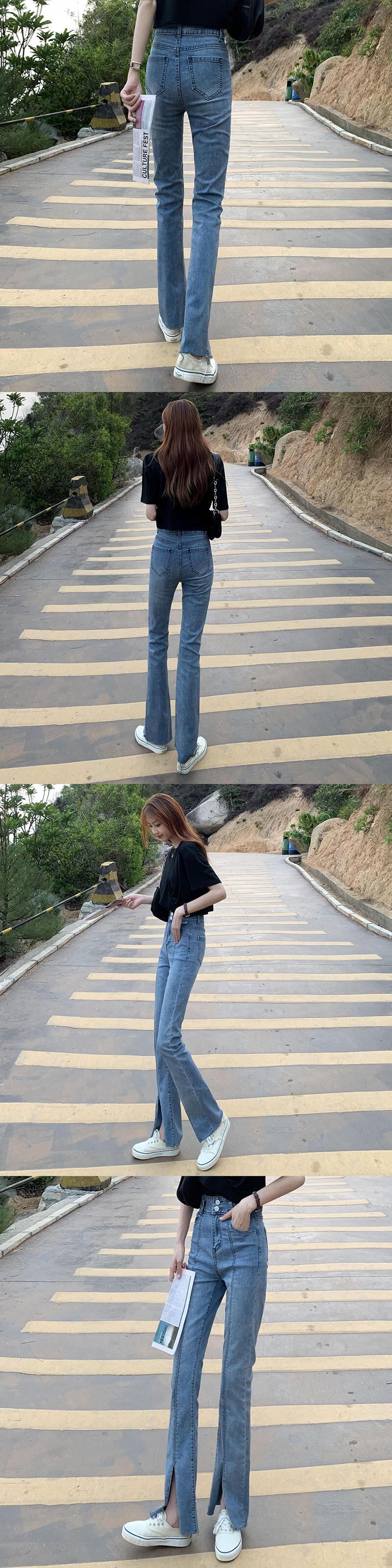 ジーンズ ハイウェストスリムフィット薄手パンツ エラスティック 伸縮 クレセントシティ30377019380