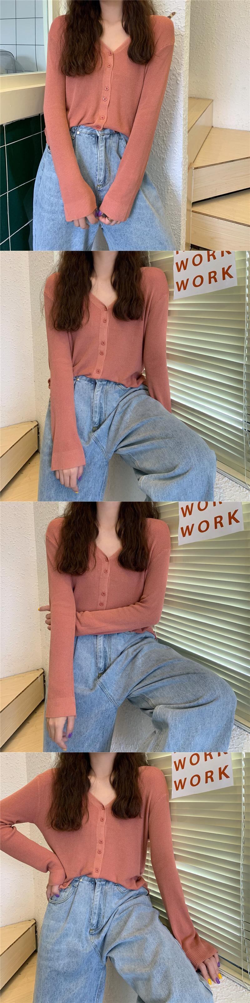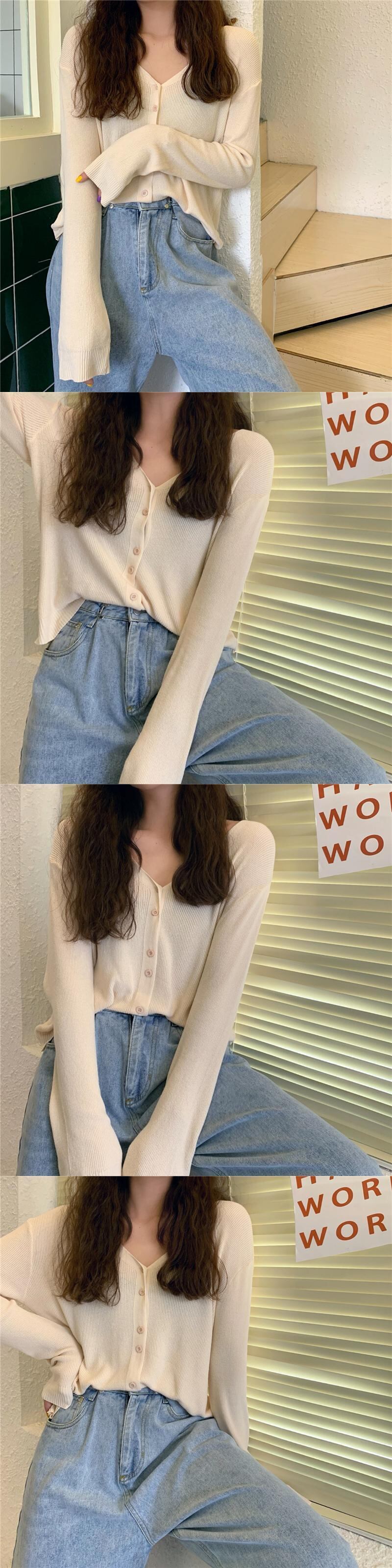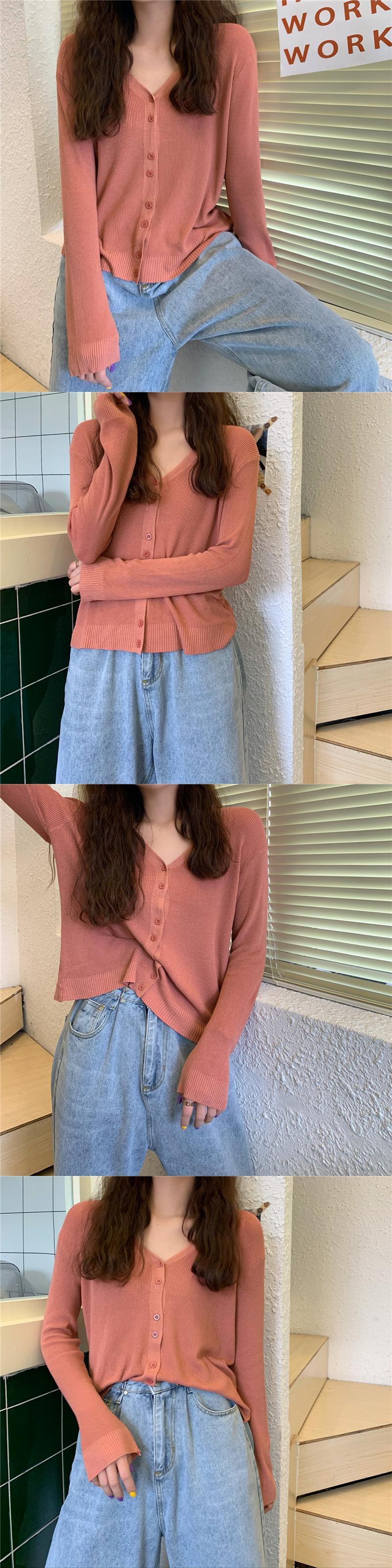 薄手ニットセーター オータムVネックルーズソリッド カラーカーディガントップス ロング 秋物 ソリッドカラー クレセントシティ48259796514