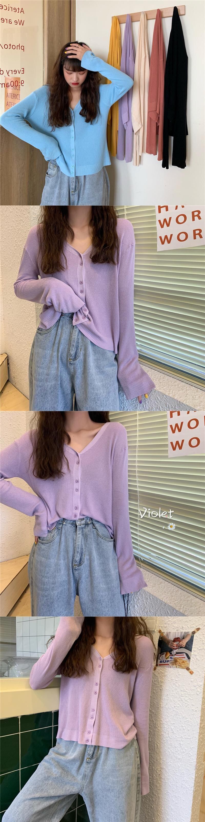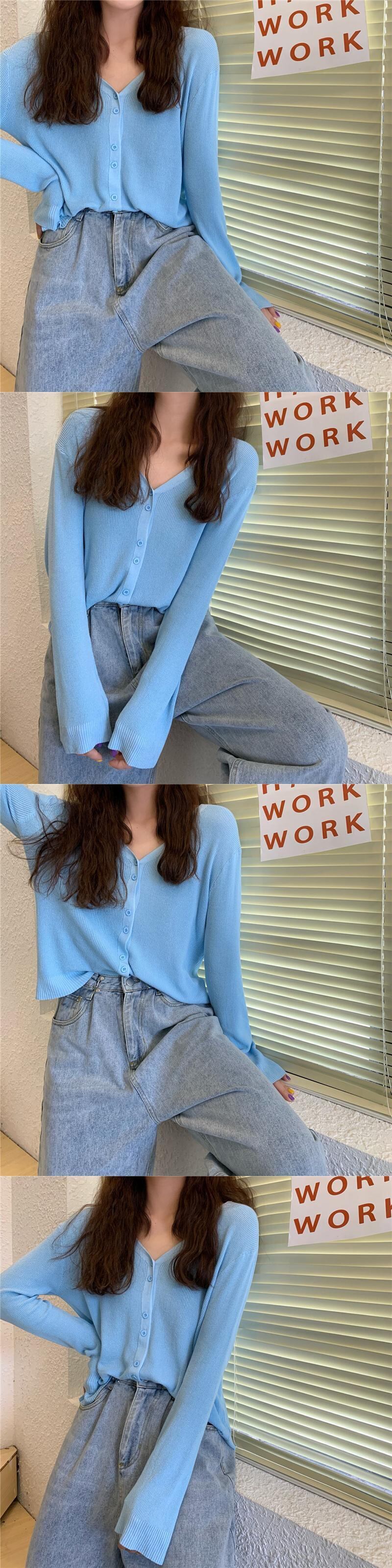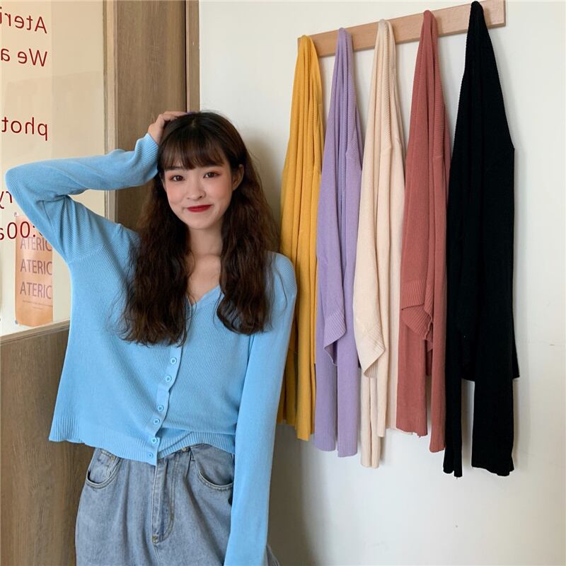 薄手ニットセーター オータムVネックルーズソリッド カラーカーディガントップス ロング 秋物 ソリッドカラー クレセントシティ48259796514