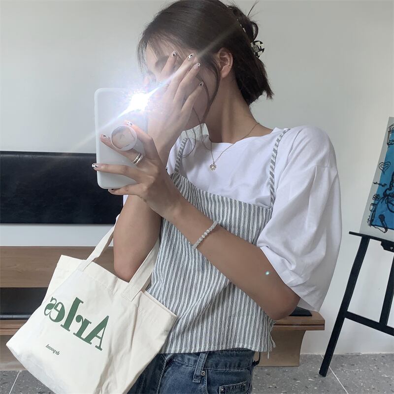 サマーホワイトTシャツ ショートスタイルルーズ薄手トップス 夏物 クレセントシティ1451490659