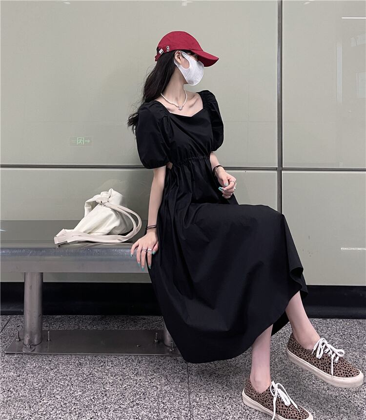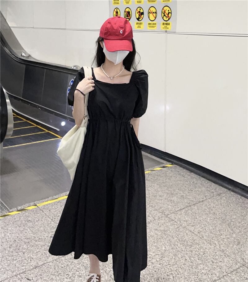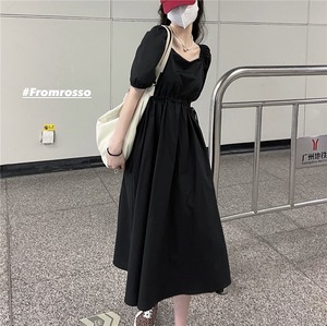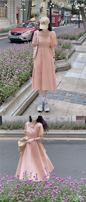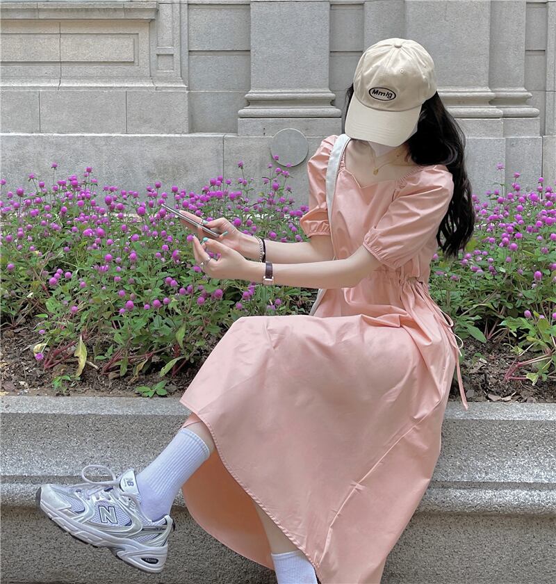 スリーブドレス サマーカラーウェストAラインスカート ピンク 大人ガーリー スウィート キュート カジュアル 夏物 スクウェア クレセントシティ72595091785