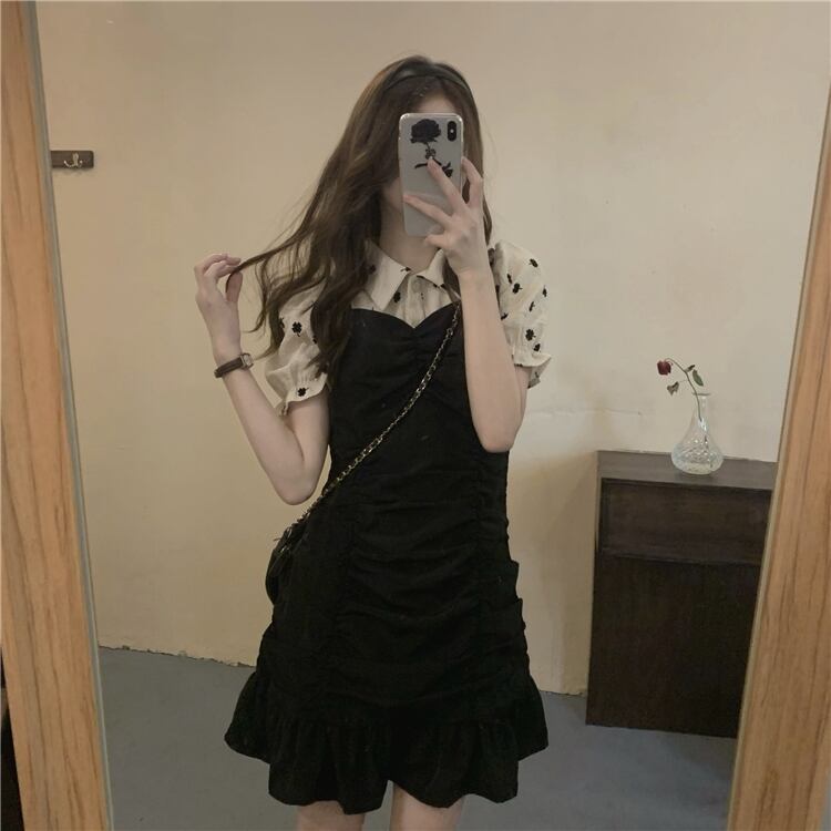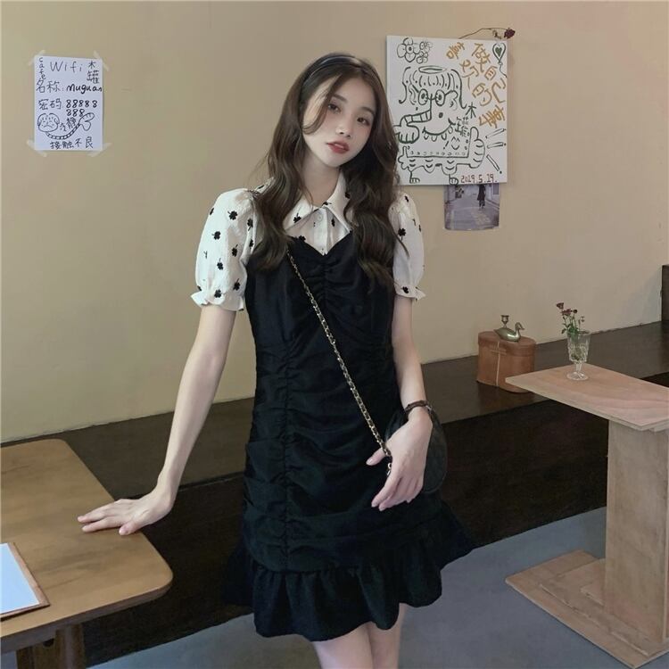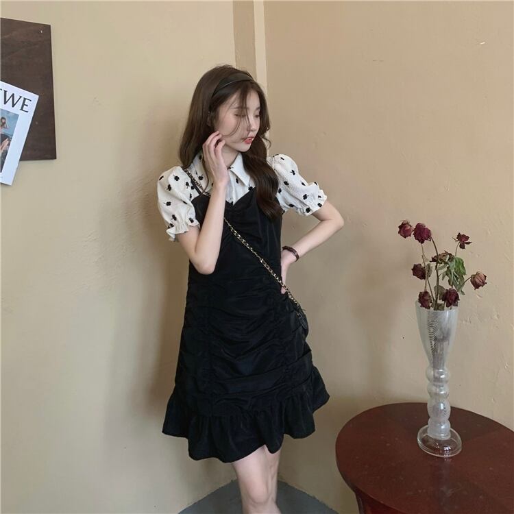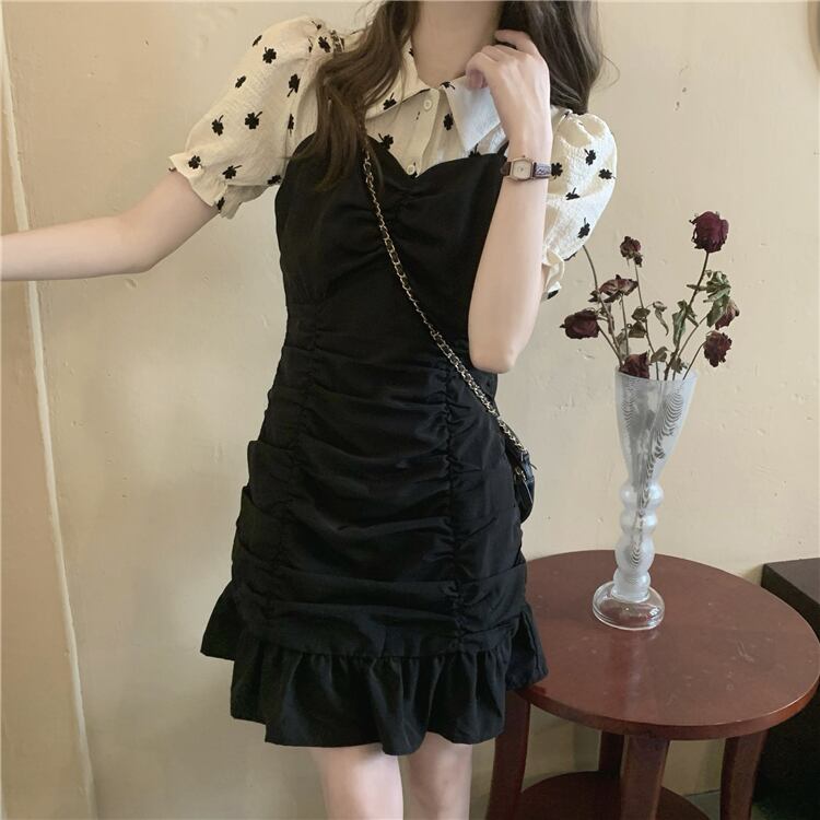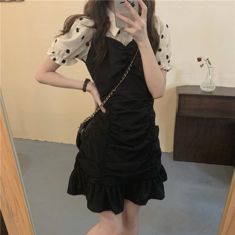 スリーブシャツ プリーツウェストブラックドレス クレセントシティ20278503806