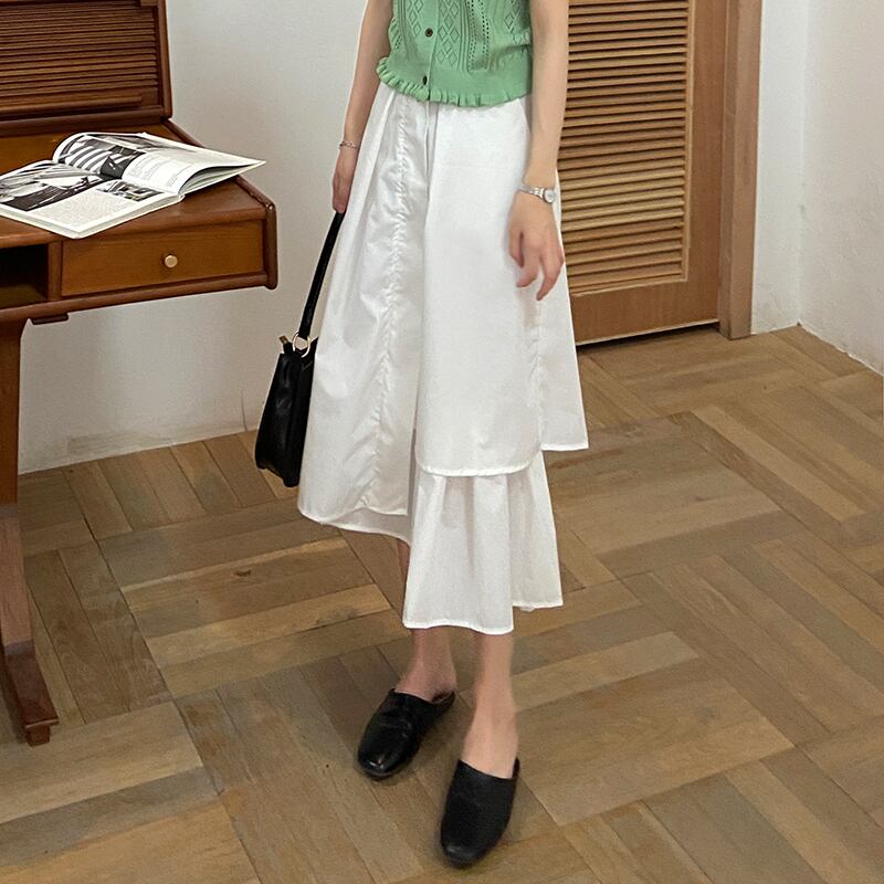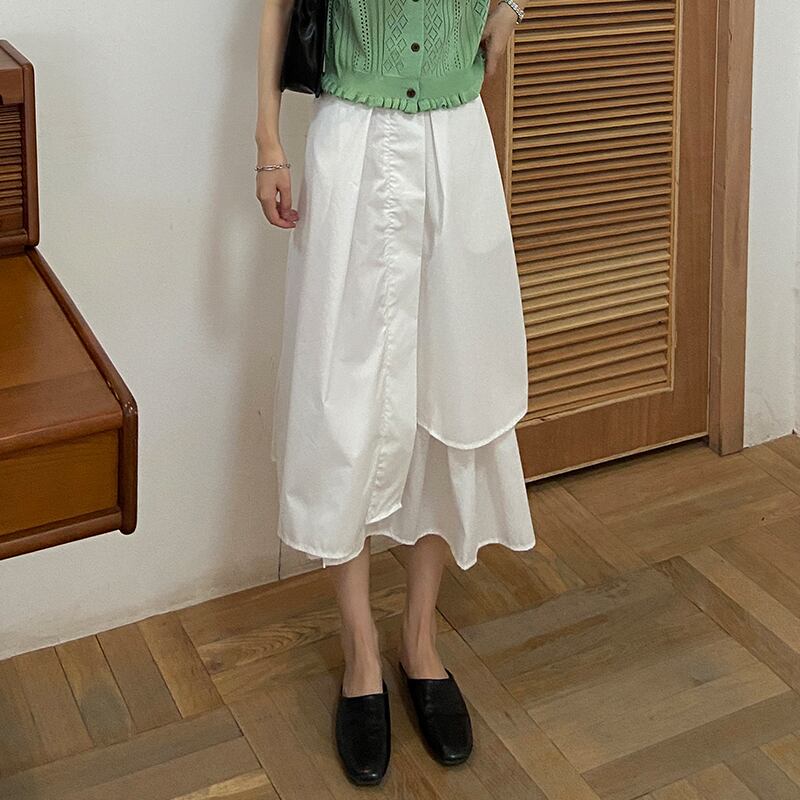 ストレッチウェストスカート サマールーズハイウェストAライン エラスティック 伸縮 夏物 クレセントシティ7105167065