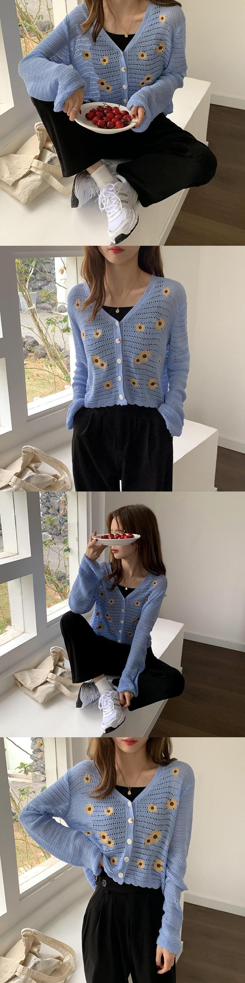 ニットカーディガンレディースルーズ薄手長袖スリーブシャツ ショートトップス ロング レッド 刺繍 クレセントシティ8002293384