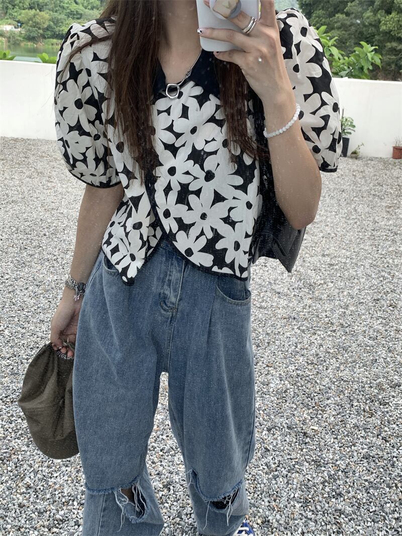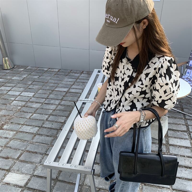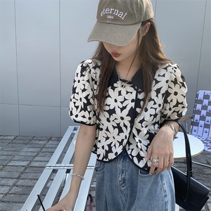 サマーフローラルブラウス スタイルショートスリーブシャツ 大人ガーリー スウィート キュート カジュアル 夏物 花柄 クレセントシティ22821821891