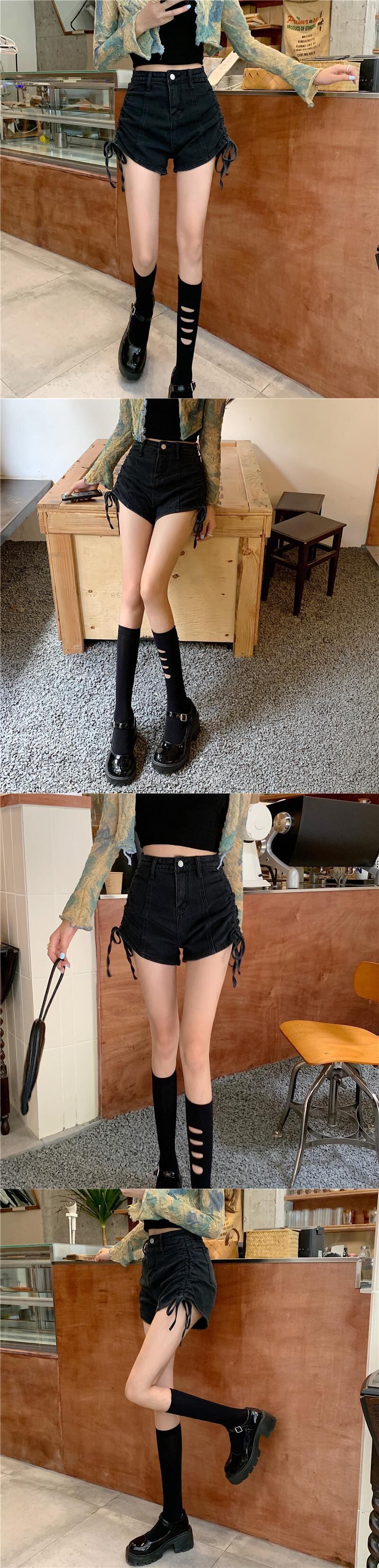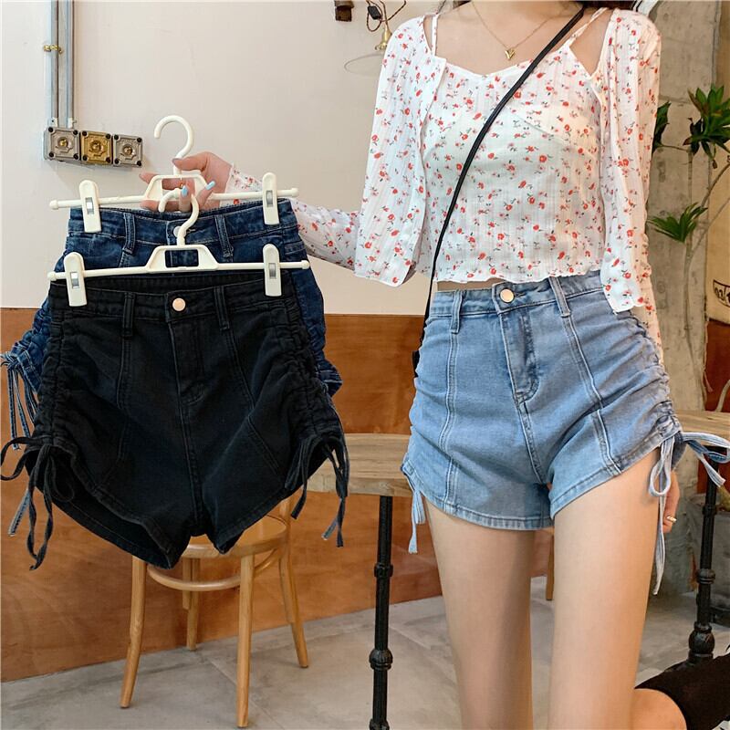 ブラックショーツ サマースタイルスリムギャザーハイウェストウェストAラインパンツ 夏物 ブルマー クレセントシティ91760542122