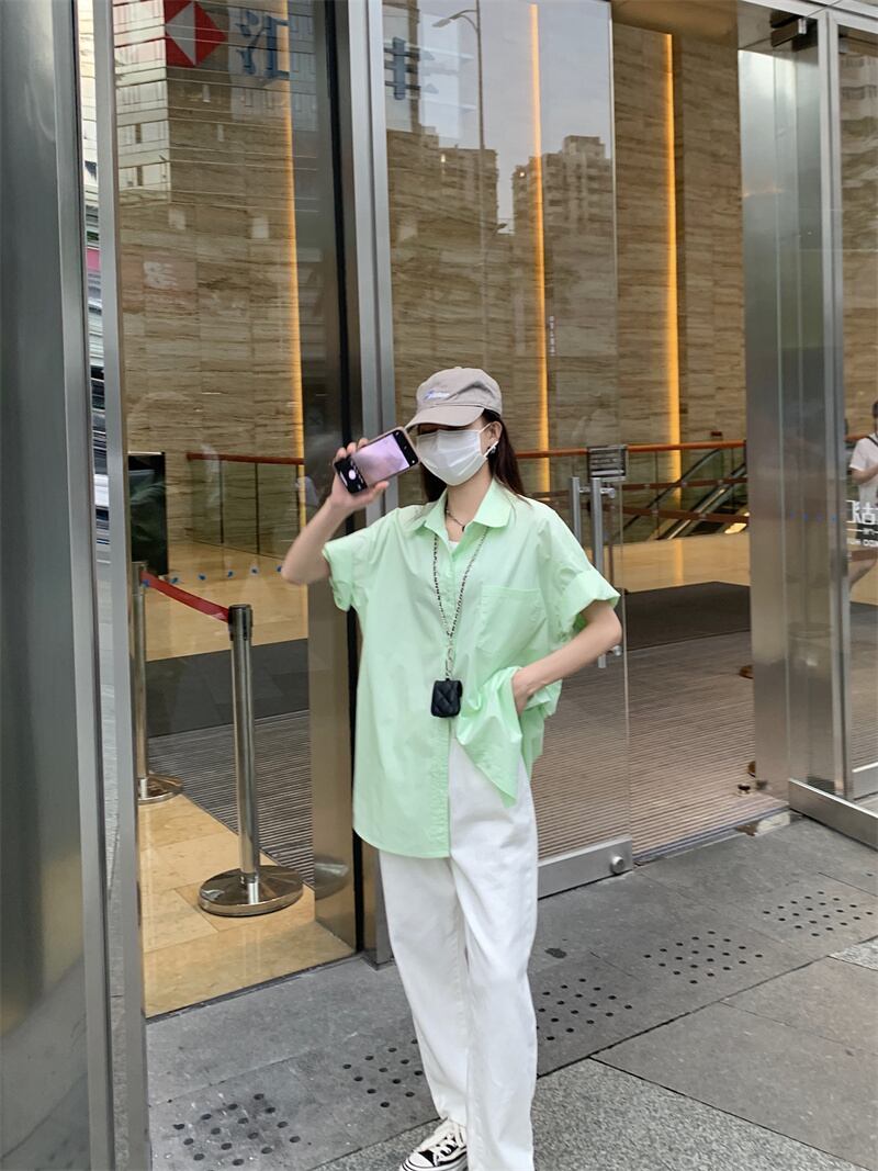ソリッド カラーシャツ レディースサマールーズ薄手 夏物 ソリッドカラー クレセントシティ94669680820