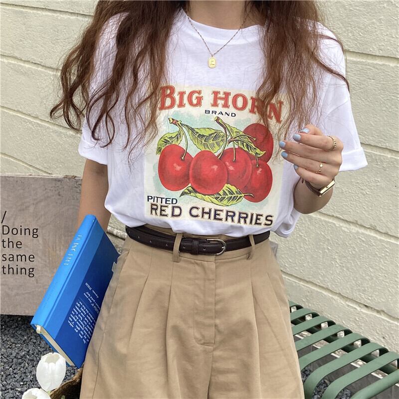 プリントTシャツ サマーカジュアルルーズホワイトトップス 夏物 クレセントシティ85633450844