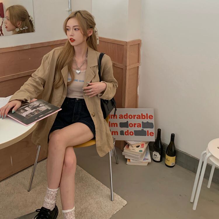 オータム薄手カジュアルジャケット レディースルーズソリッド カラー 秋物 ソリッドカラー クレセントシティ38098786177