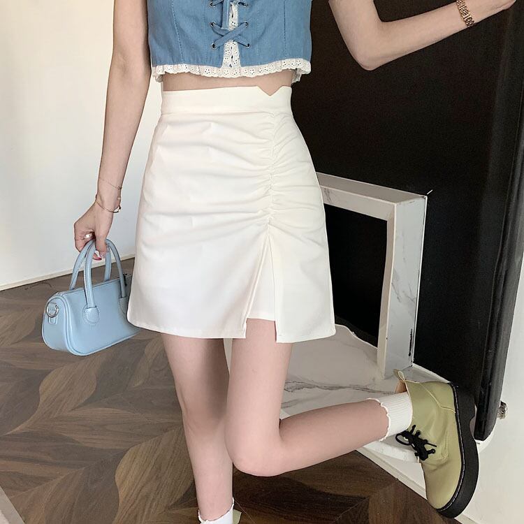 ホワイトAラインショートスカート サマーハイウェストウェスト 夏物 クレセントシティ50493261387