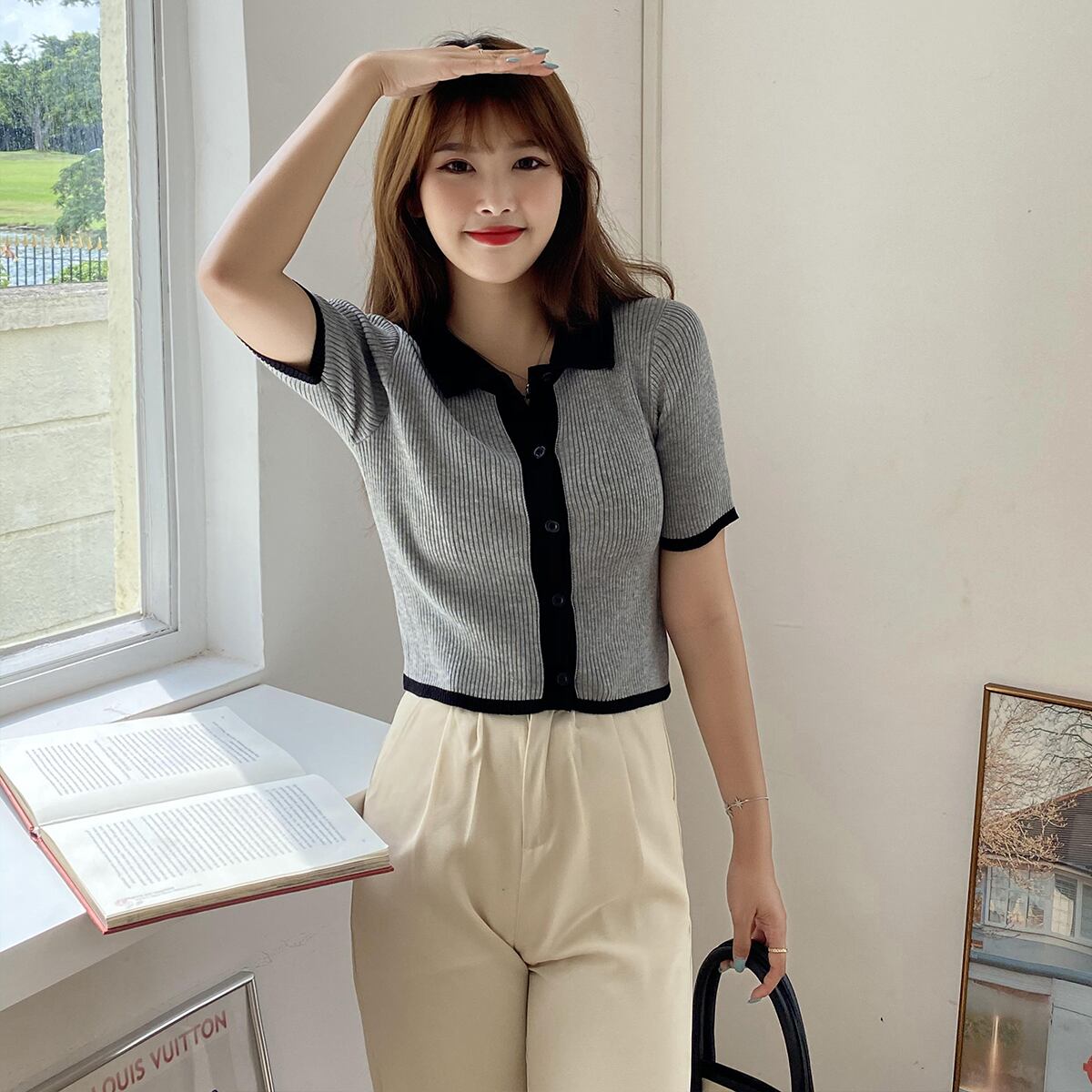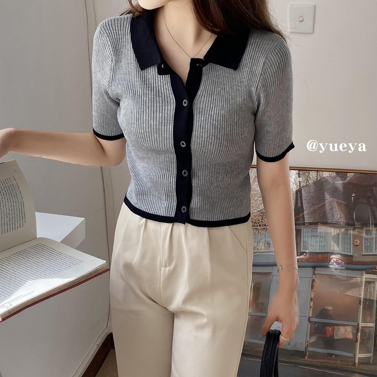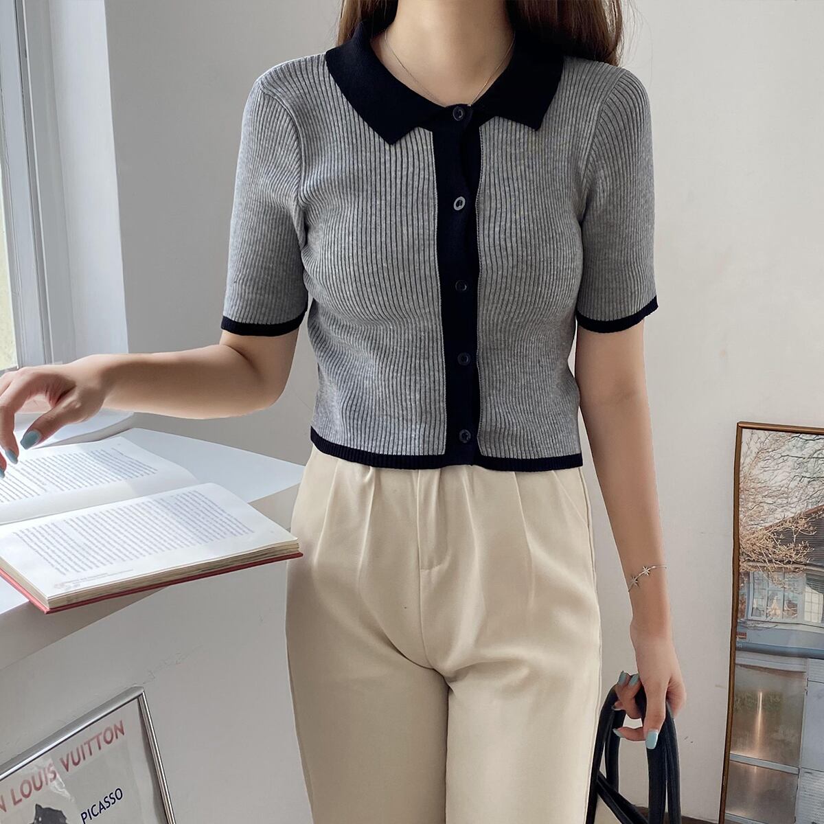 スタンダードカラーセーター サマースリム薄手ブラウス レトロ 夏物 クレセントシティ24270275337