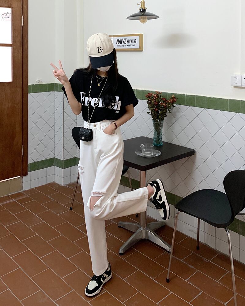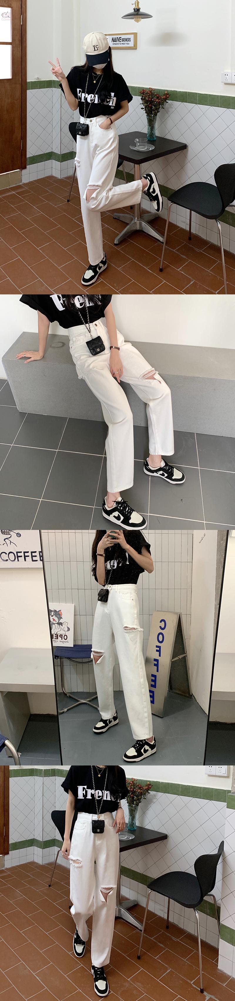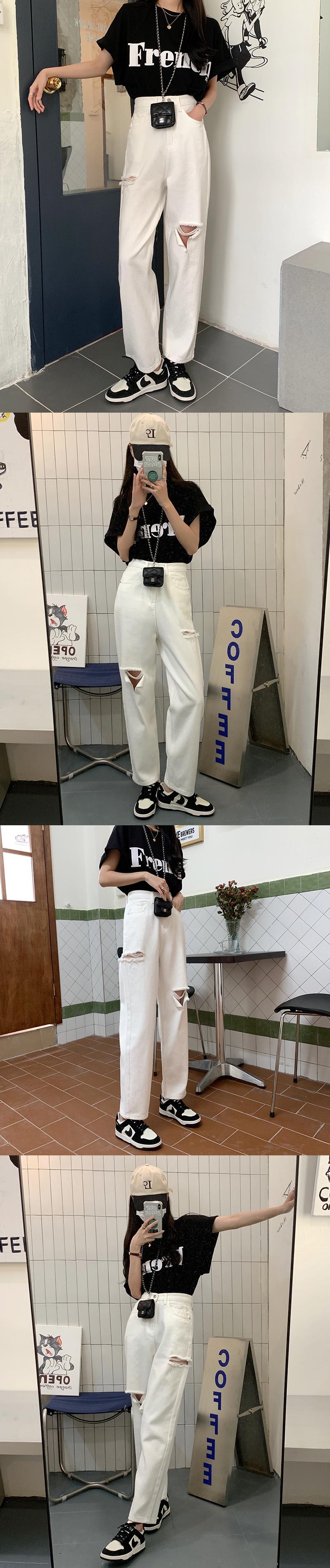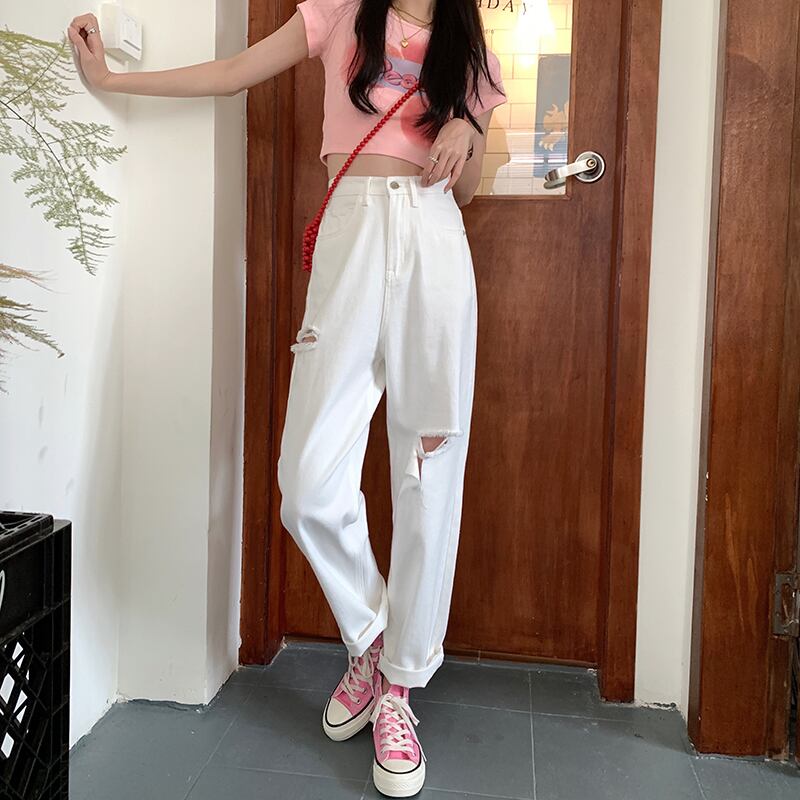 ホワイトハイウェストウェストジーンズ サマールーズ薄手 夏物 クレセントシティ11159976543