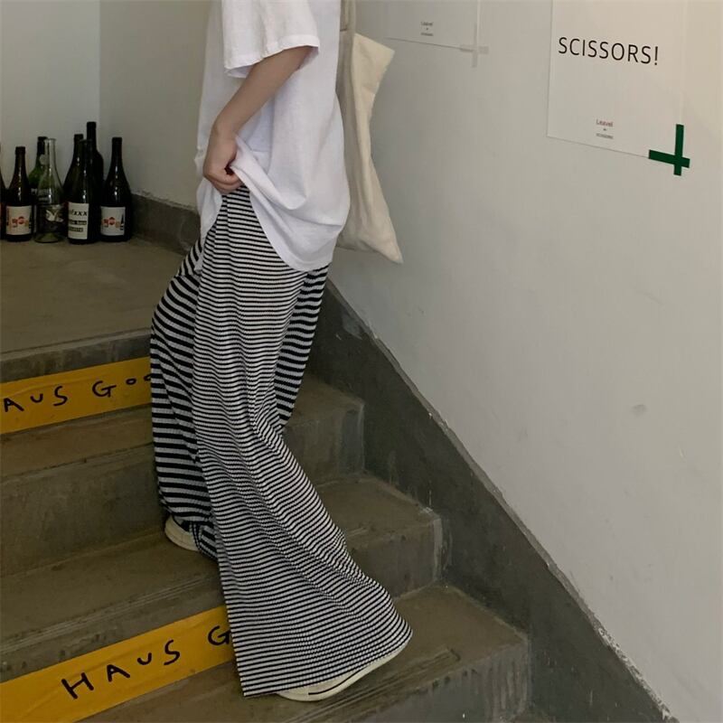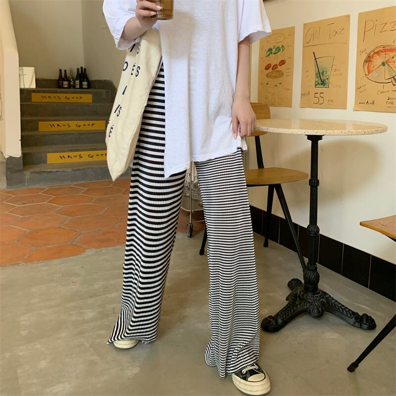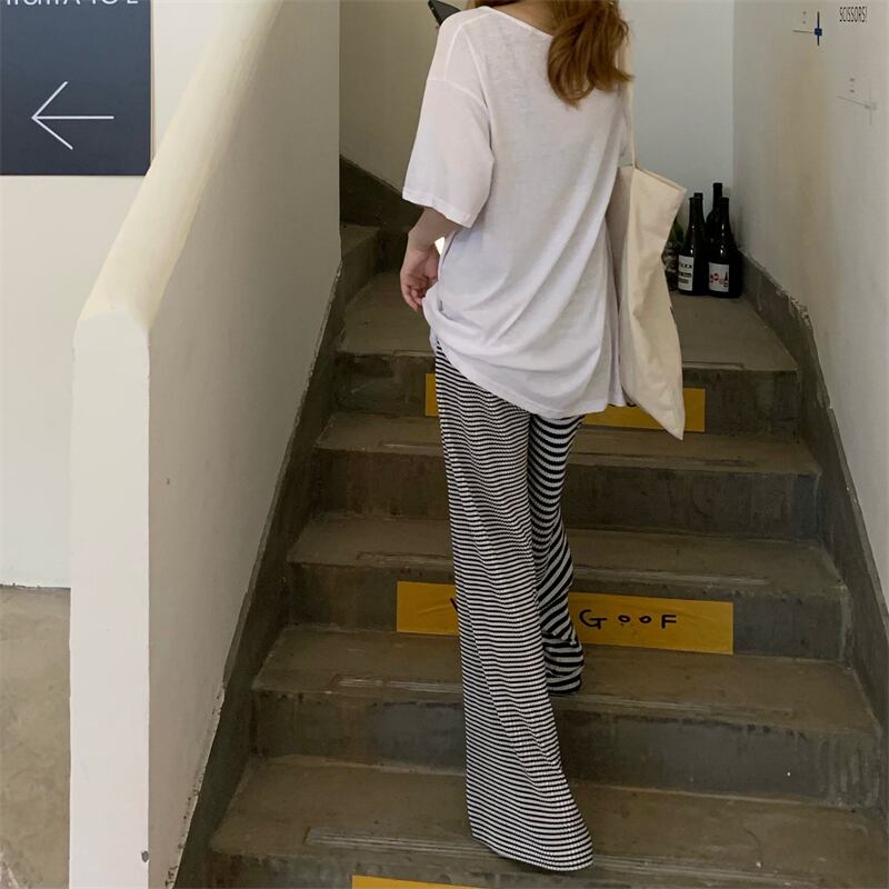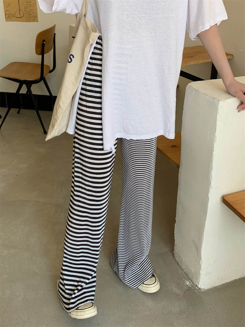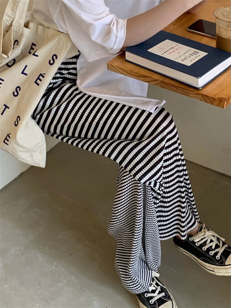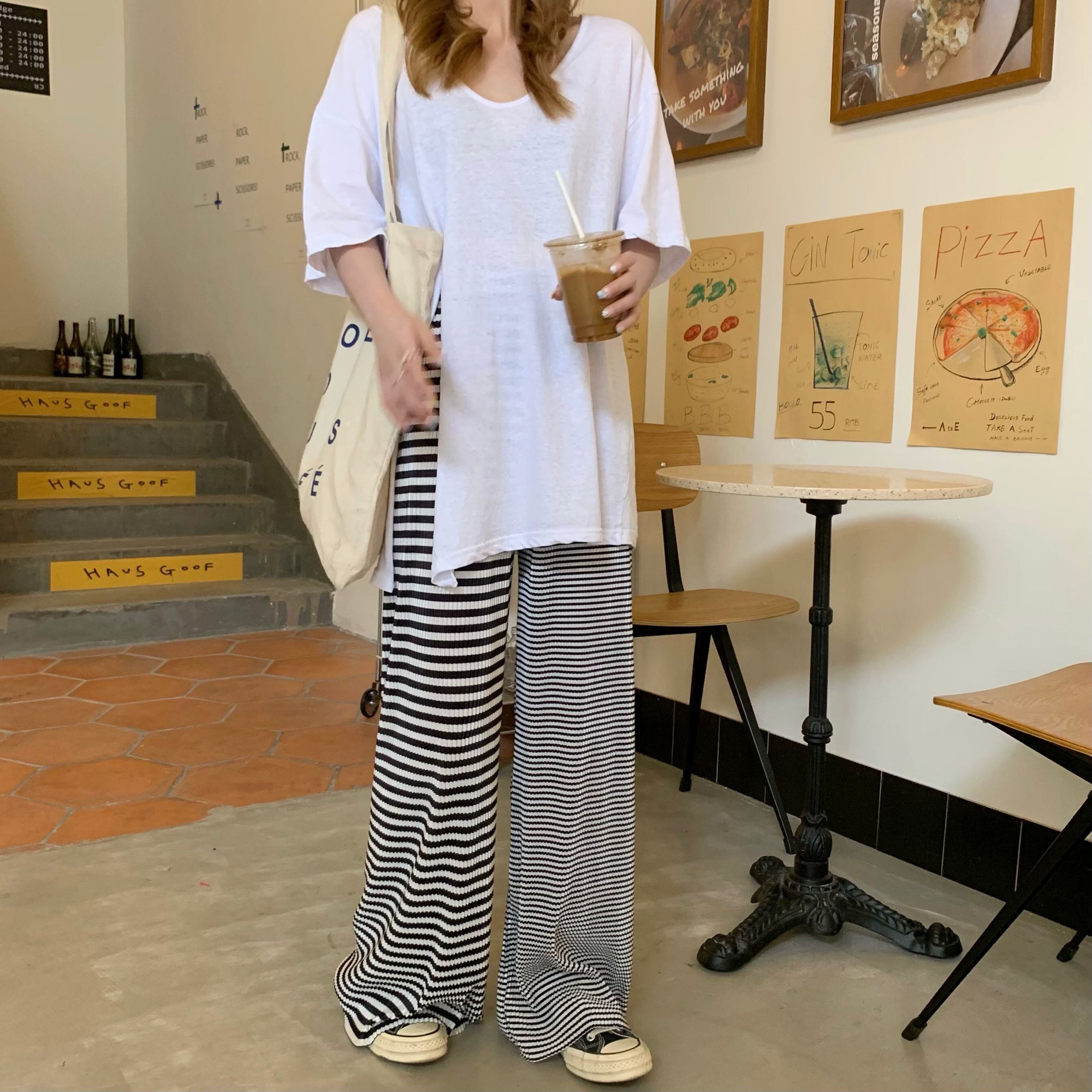 ウェストストライプカジュアルパンツ サマールーズ薄手ワイドレッグ 夏物 ワイドパンツ クレセントシティ49370779279