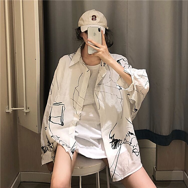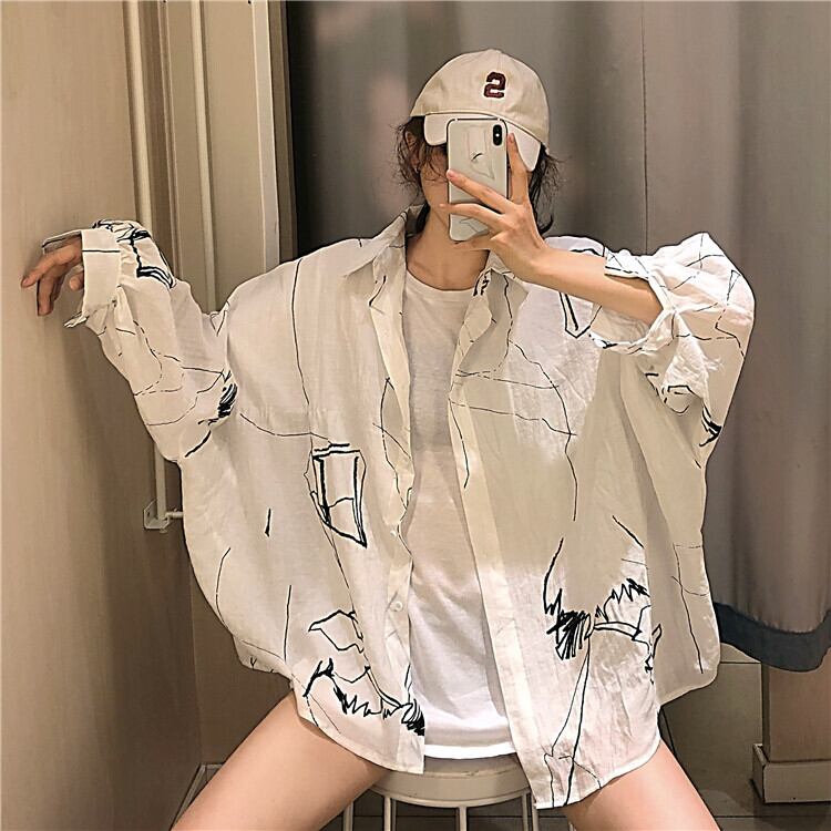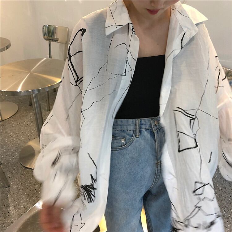 プリントシャツ レディースサマールーズカジュアル薄手カーディガントップス ロング 夏物 クレセントシティ67387747220