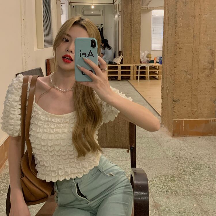 ホワイトラウンドネックTシャツ サマースタイルスリムトップス 大人ガーリー スウィート キュート カジュアル 夏物 Oネック クレセントシティ69860696798