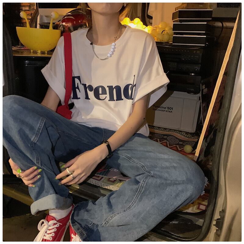 プリントTシャツ サマーラウンドネックルーズ薄手トップス 夏物 Oネック クレセントシティ97968240702