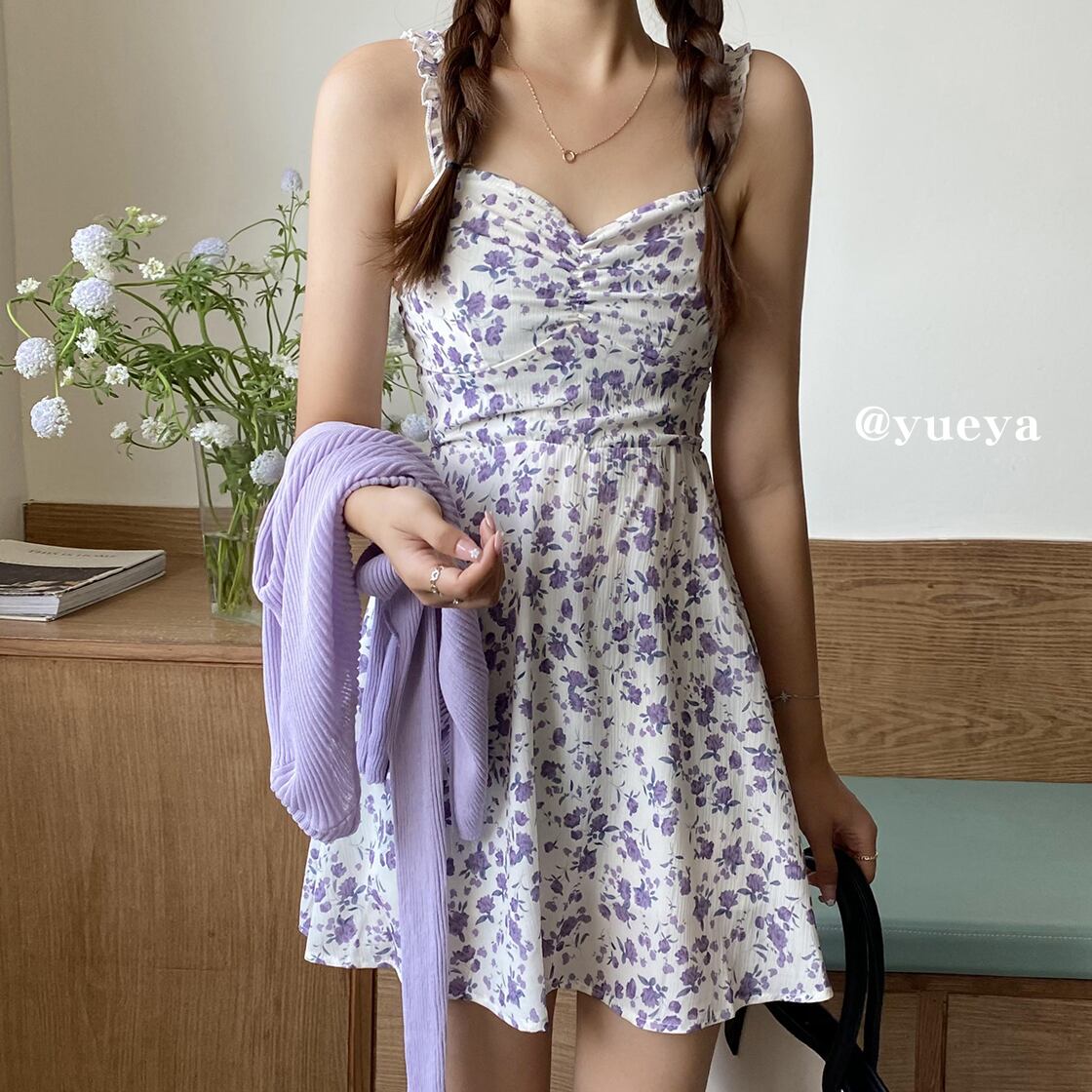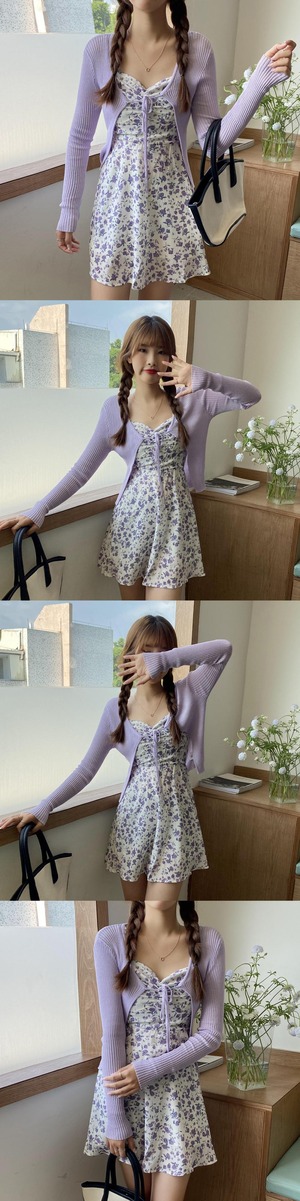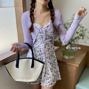 フローラルドレス サマースタイルカラーニット長袖スリーブカーディガンセット ロング 夏物 花柄 ピュア クレセントシティ93941569044