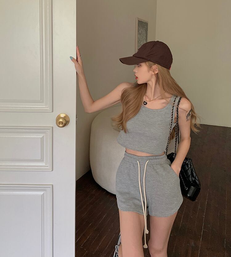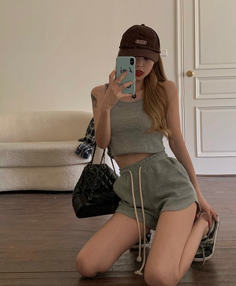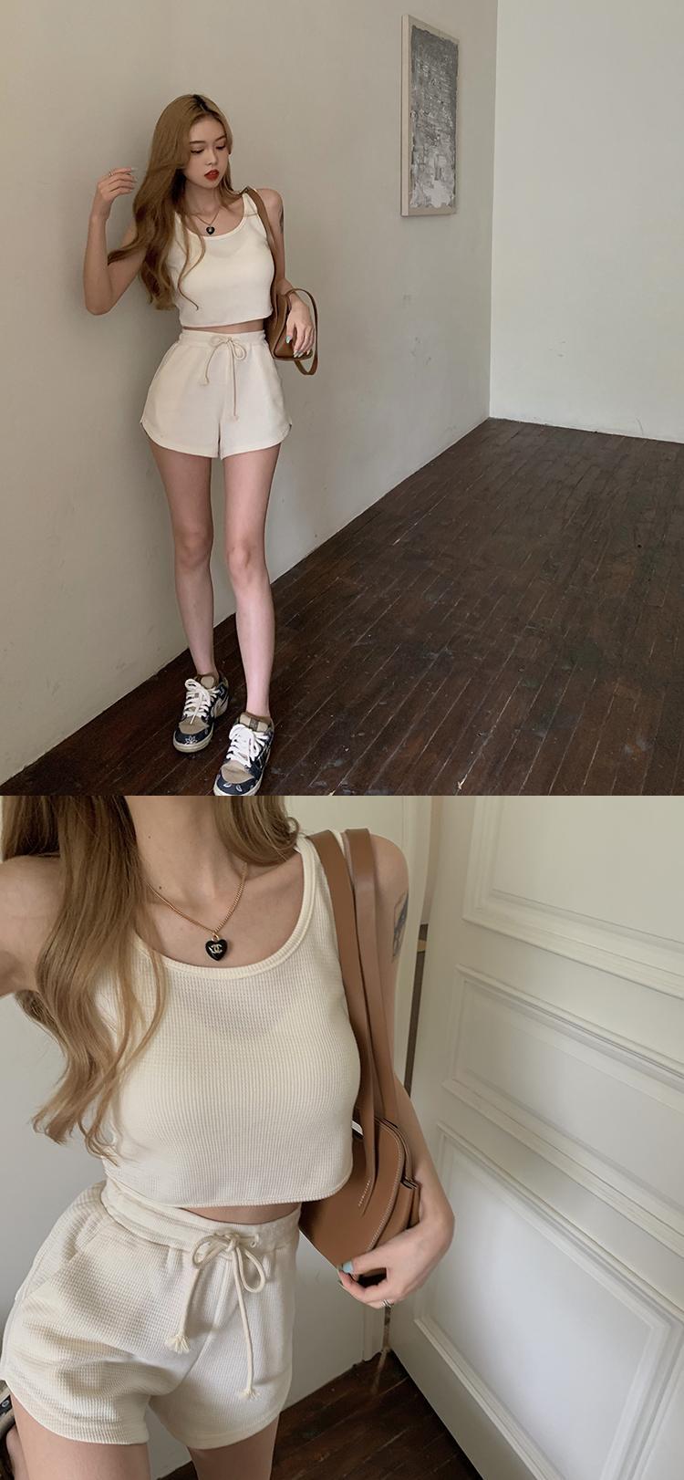 色:グレートップ,グレーのショートパンツ,ベージュトップ,ベージュのショートパンツ