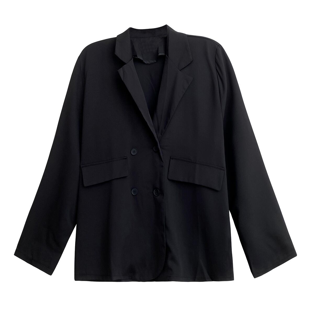 ジャケット オータムカジュアルルーズ薄手ブラック ロング 秋物 クレセントシティ80095122354