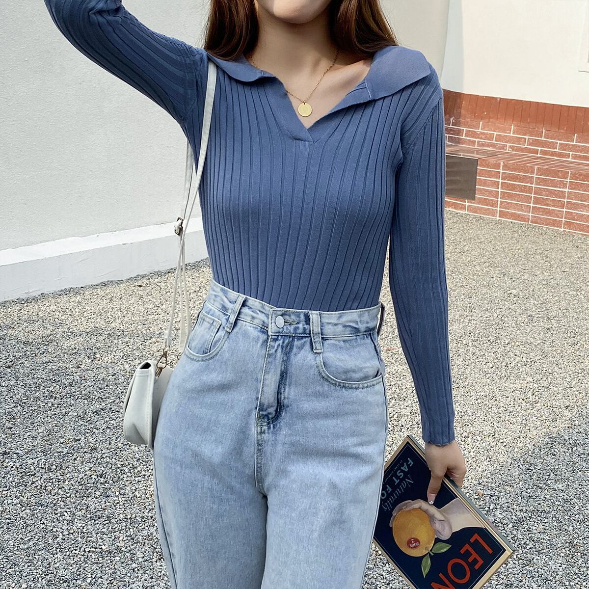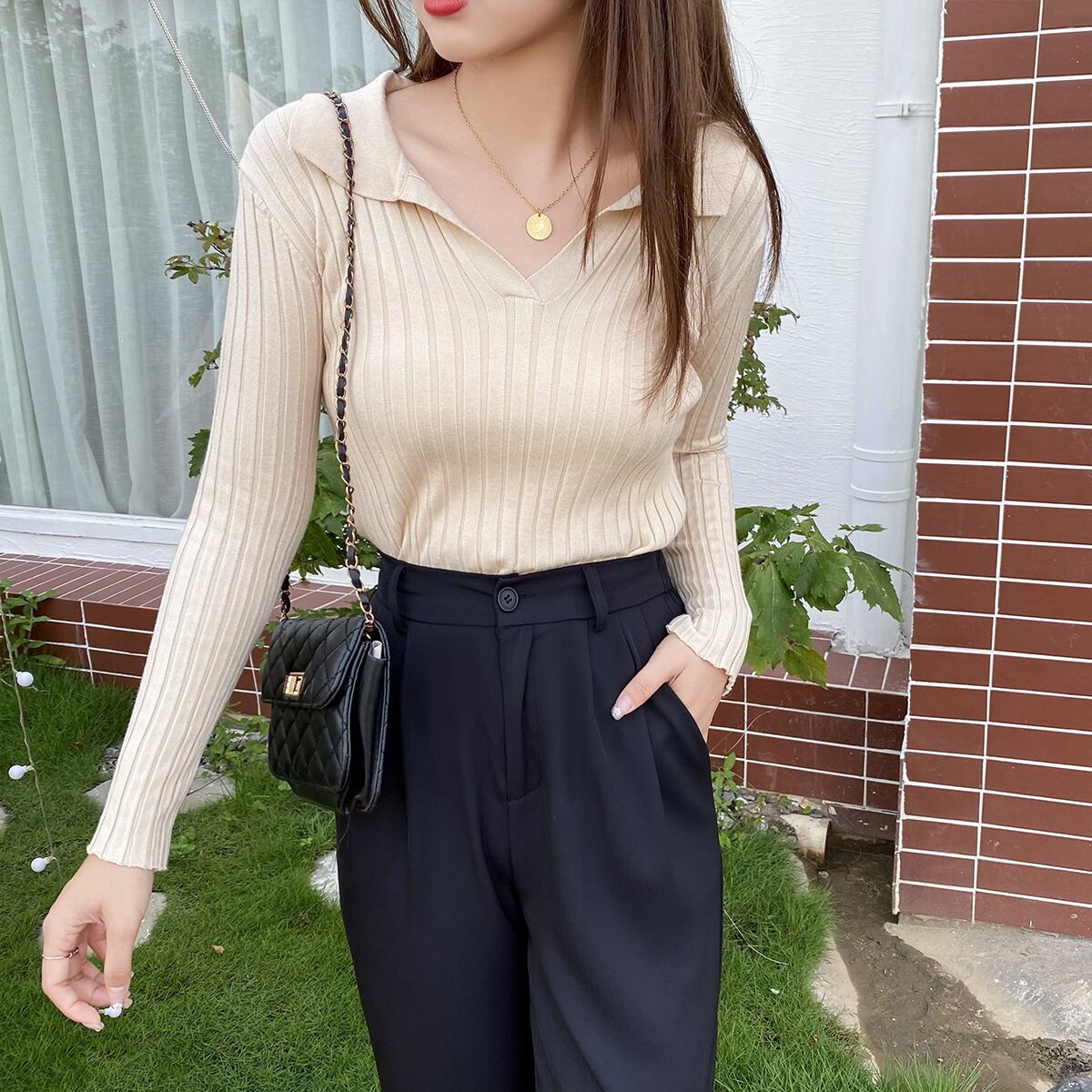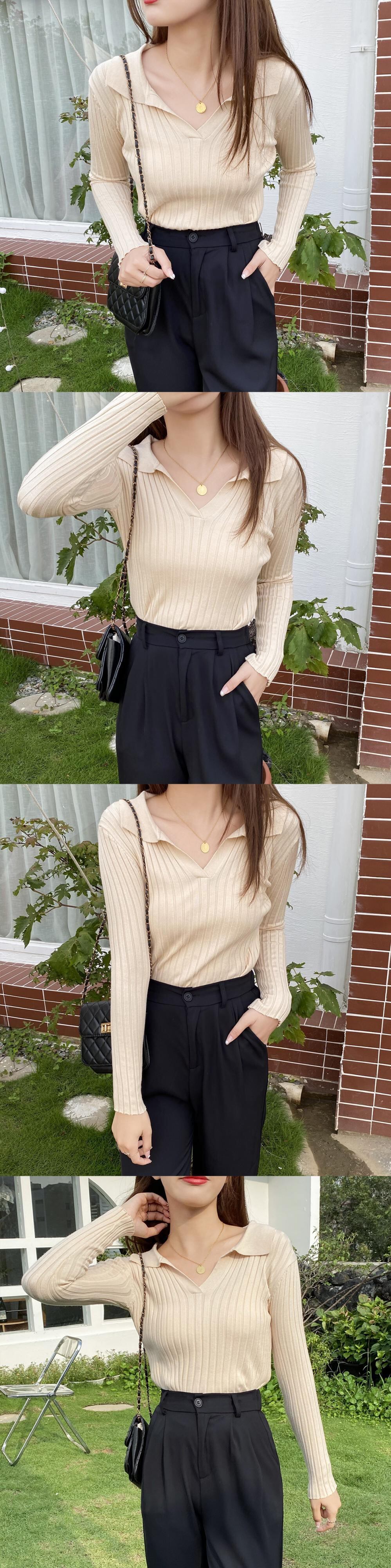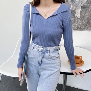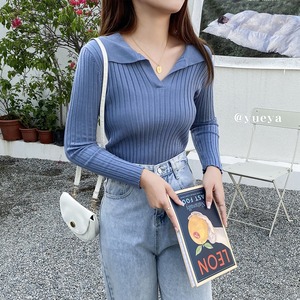 長袖スリーブニット スリムカラーシャツ トップス ロング ピュア クレセントシティ38955064160