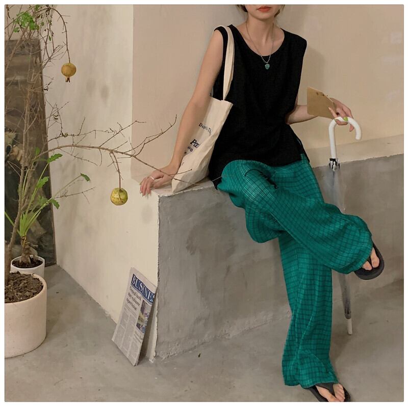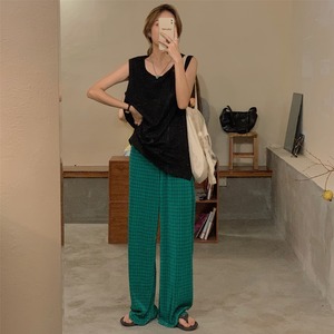 スタイルブラックノースリーブレディースウェストルーズ格子柄パンツ クレセントシティ27915387569