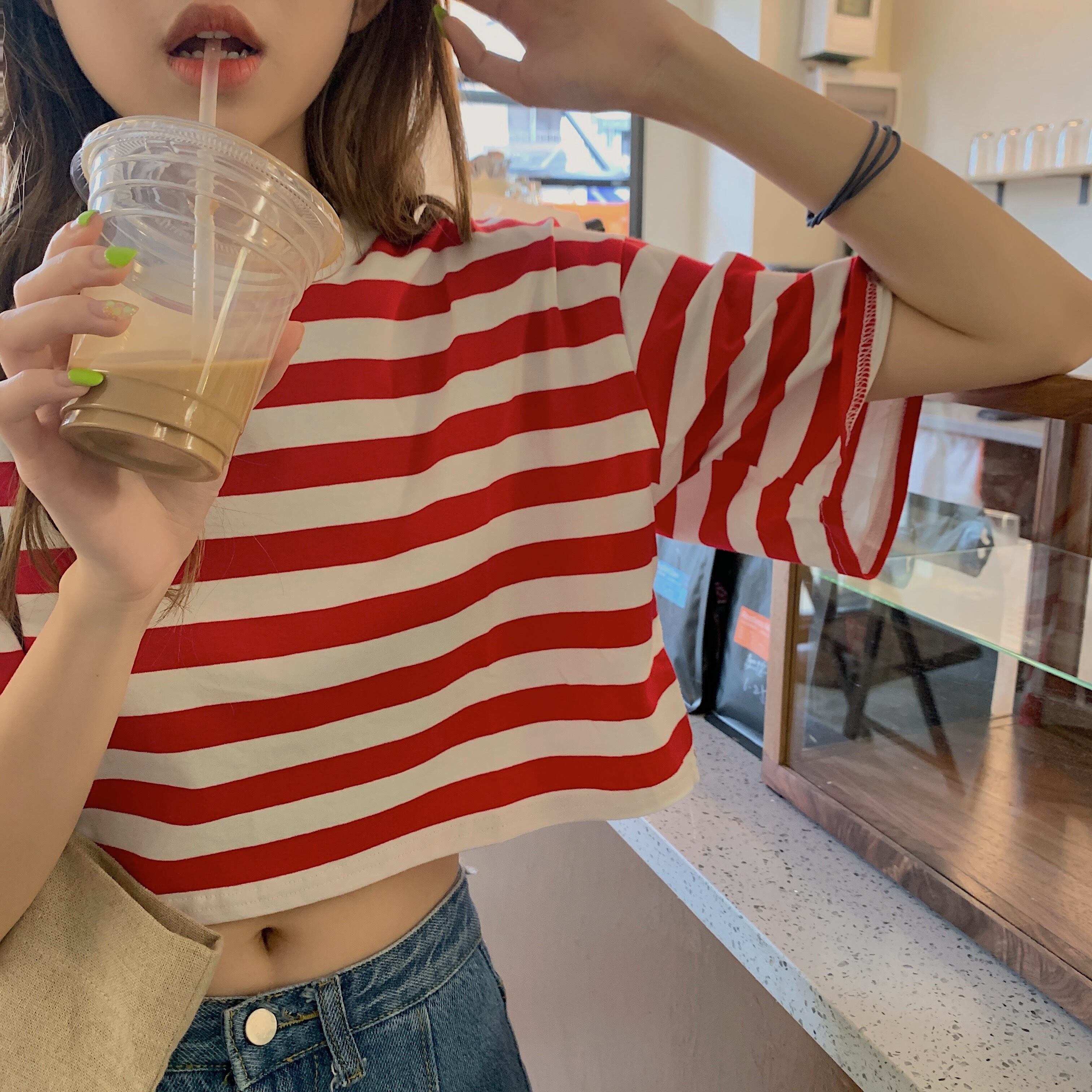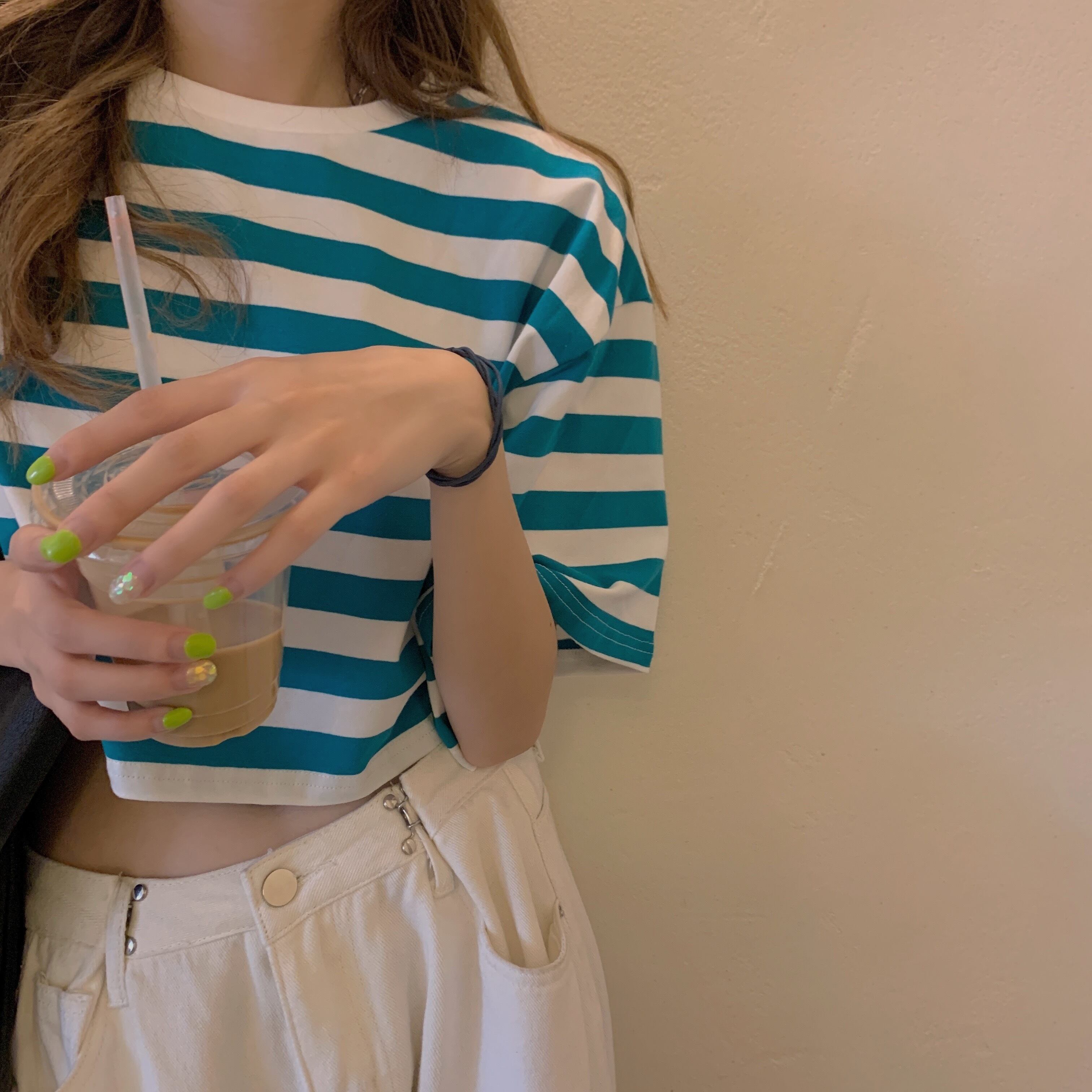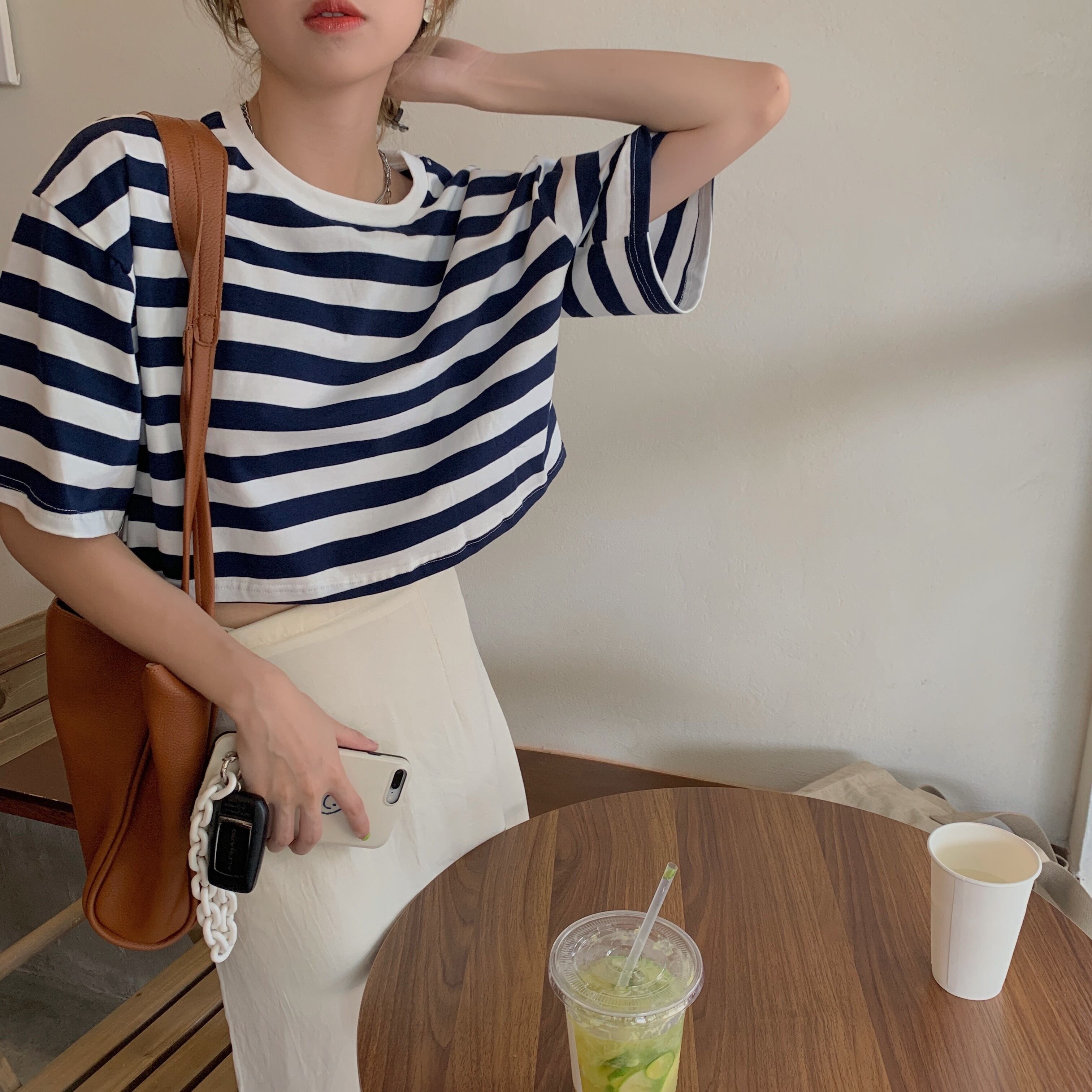 サマーストライプショートTシャツ ルーズ薄手カジュアルトップス 夏物 クレセントシティ60710933851