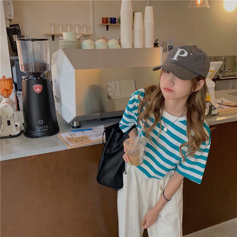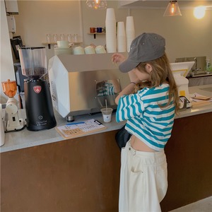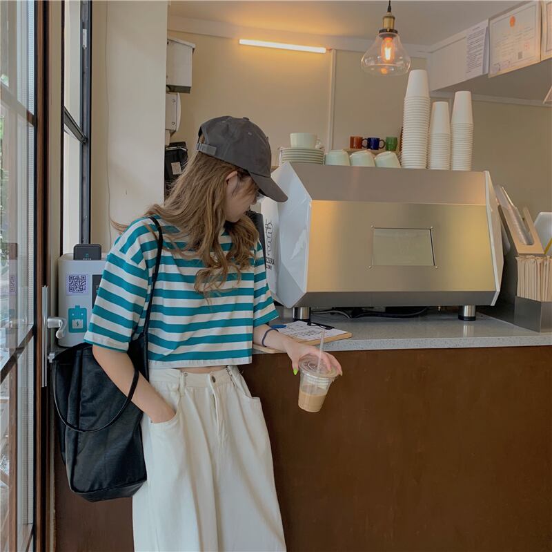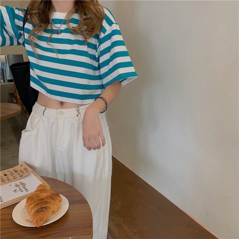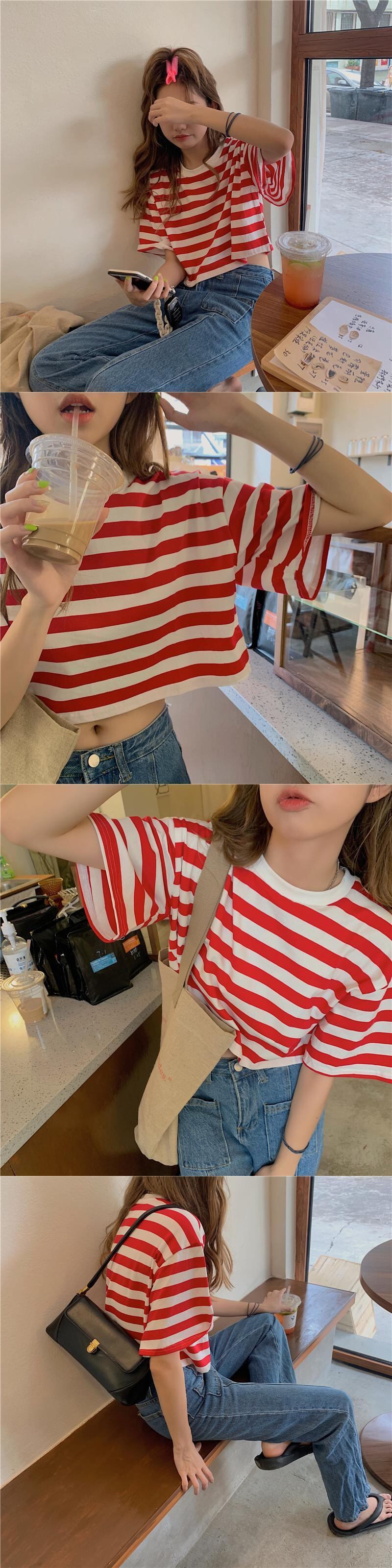 サマーストライプショートTシャツ ルーズ薄手カジュアルトップス 夏物 クレセントシティ60710933851
