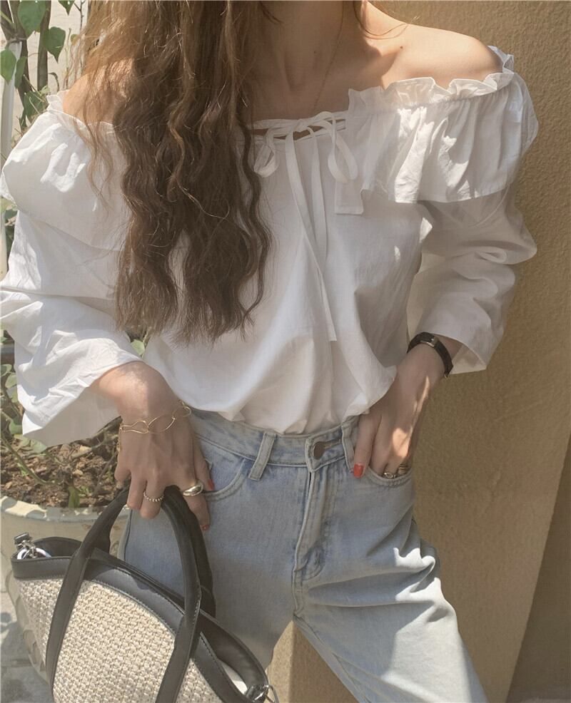 サマーブラウス ルーズ薄手ソリッド カラーシャツ ロング 夏物 ソリッドカラー クレセントシティ43732646772