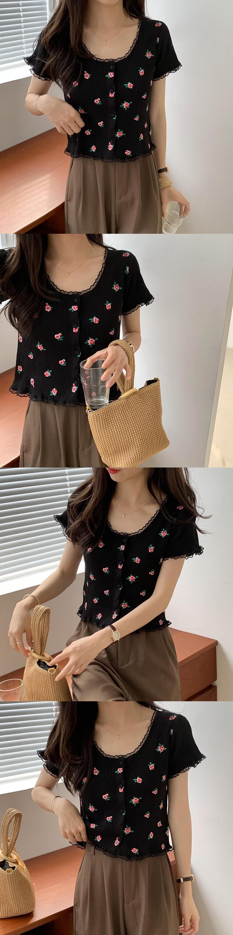 薄手ショートセーター レディースサマーフローラルレーススリムトップス 大人ガーリー スウィート キュート カジュアル 夏物 花柄 クレセントシティ99847303543