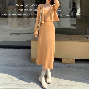 セット オータムショートロングカーディガンジャケット スリムウェストドレス 秋物 クレセントシティ74086341168