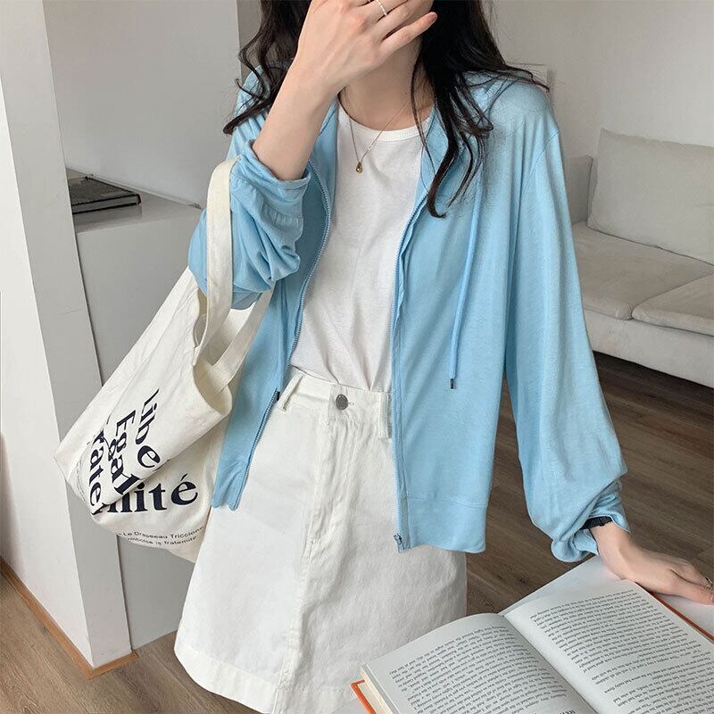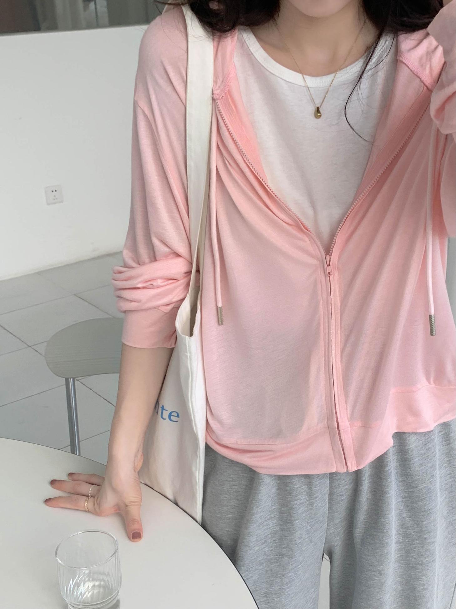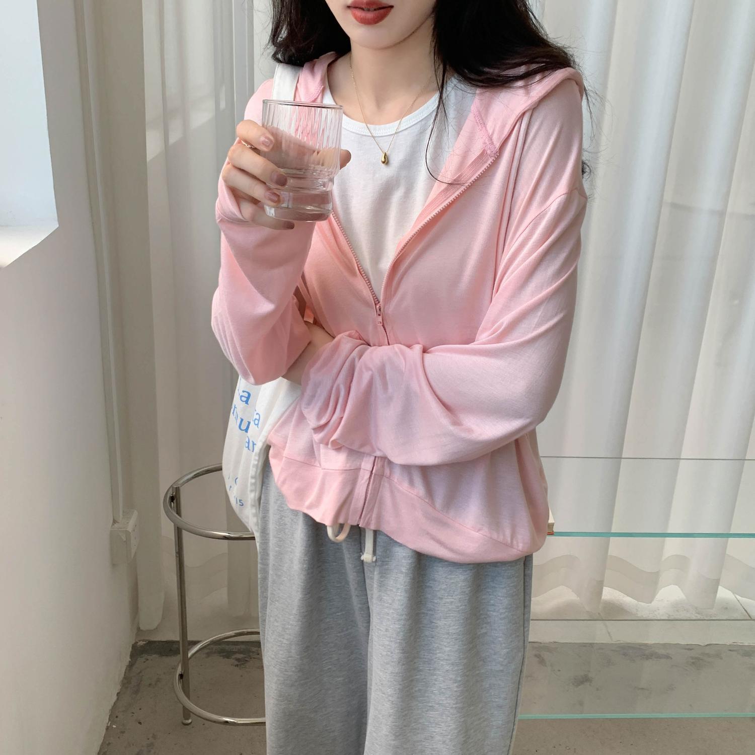 薄手フードジャケット サマーカラーカジュアルルーズカーディガントップス ロング 夏物 ピュア クレセントシティ25438505970