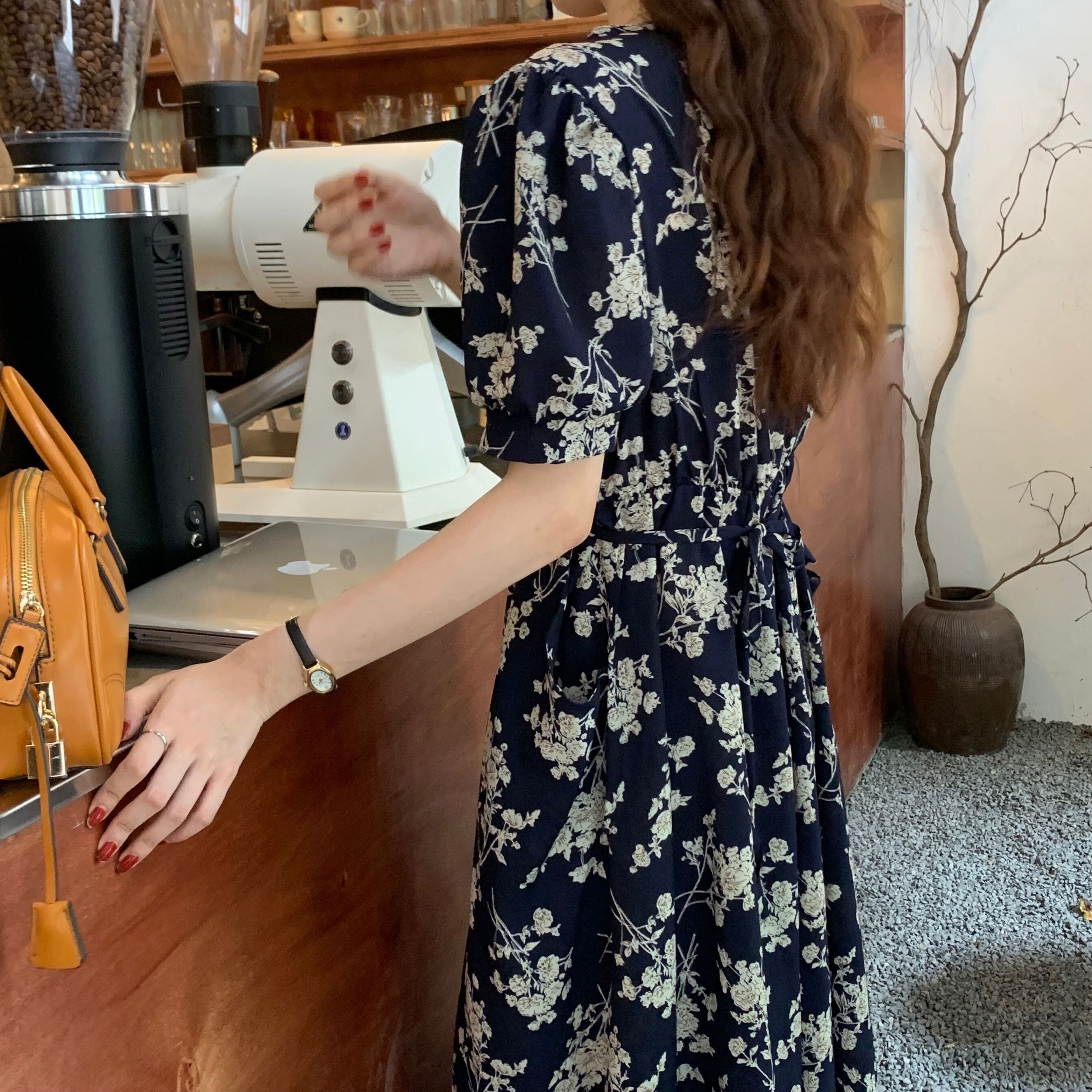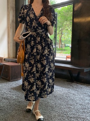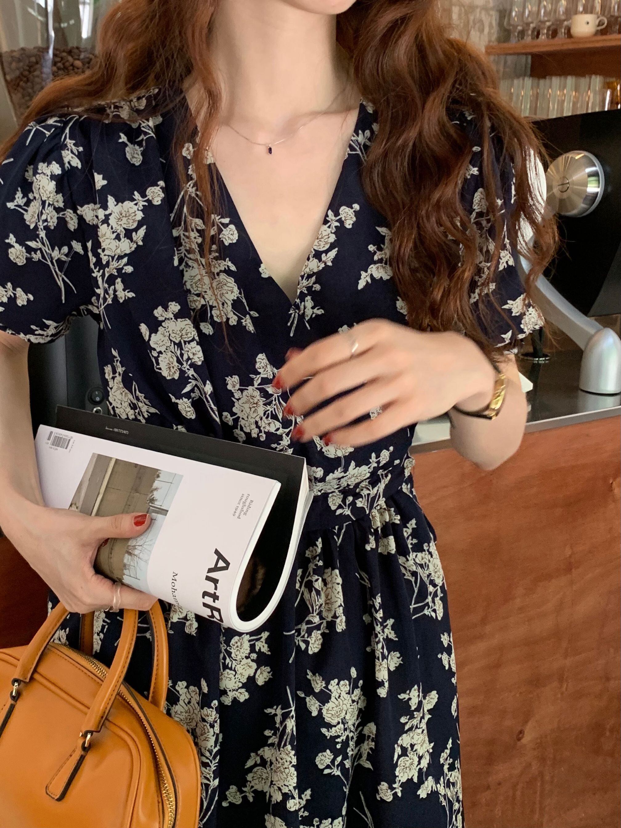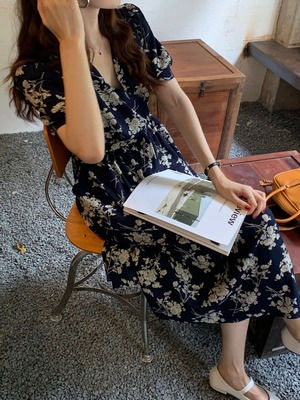 Vネックドレス サマーウェスト薄手Aラインフローラルスカート 夏物 花柄 クレセントシティ30937603170