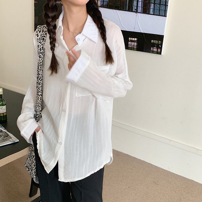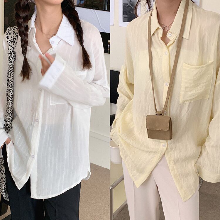 薄手ホワイトシャツ サマーカジュアルルーズ ロング 夏物 クレセントシティ28664785377