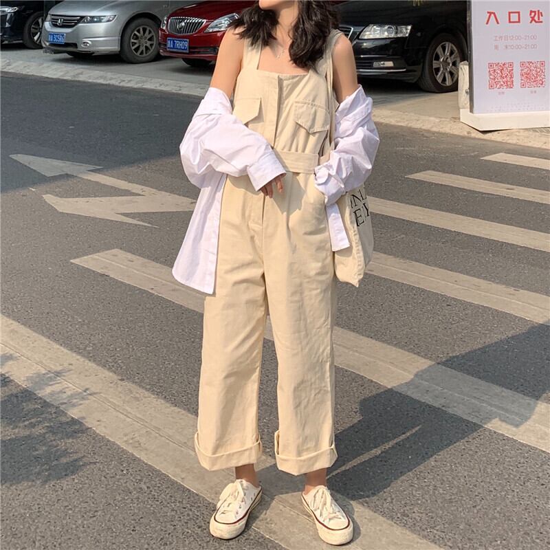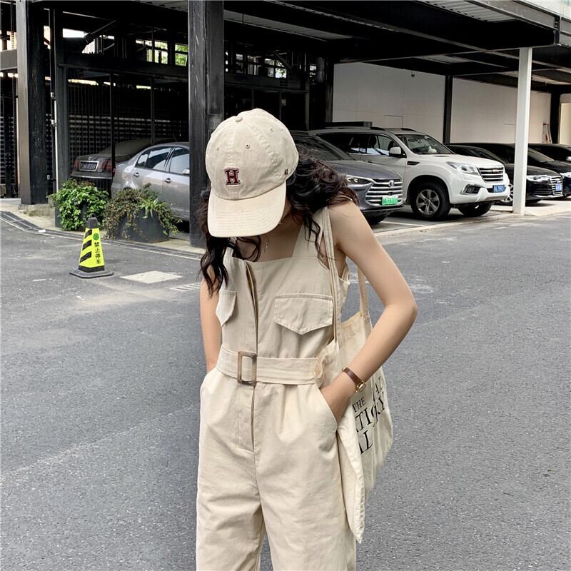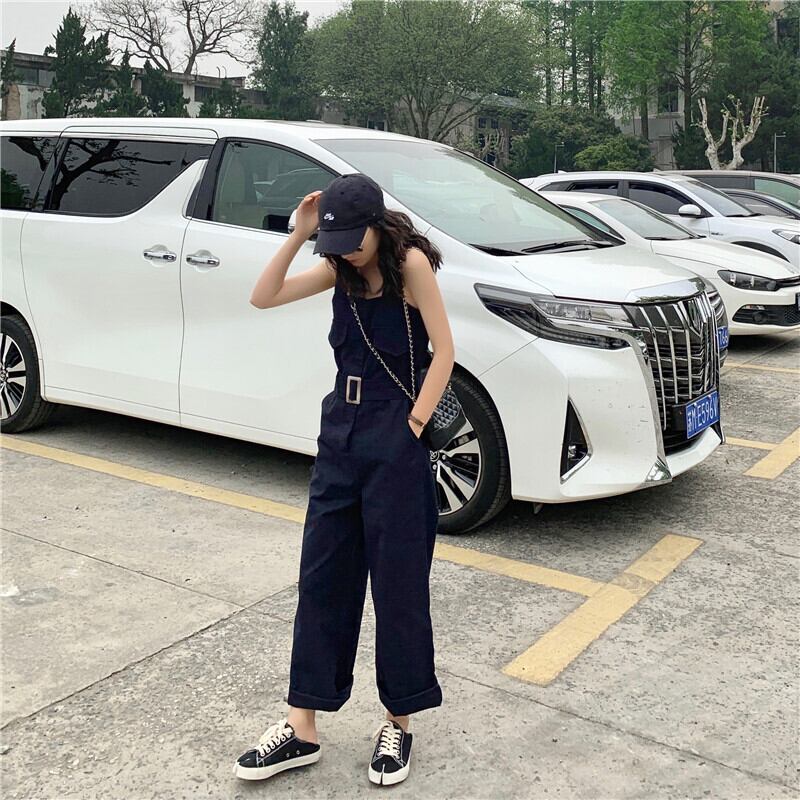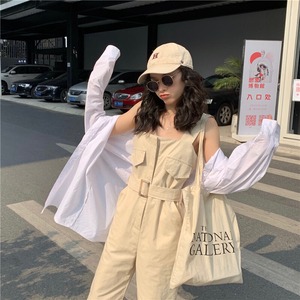 サマールーズカジュアルオーバーオール ハイウェストウェストスリムワイドレッグパンツ レディース 夏物 ワイドパンツ クレセントシティ40078625515