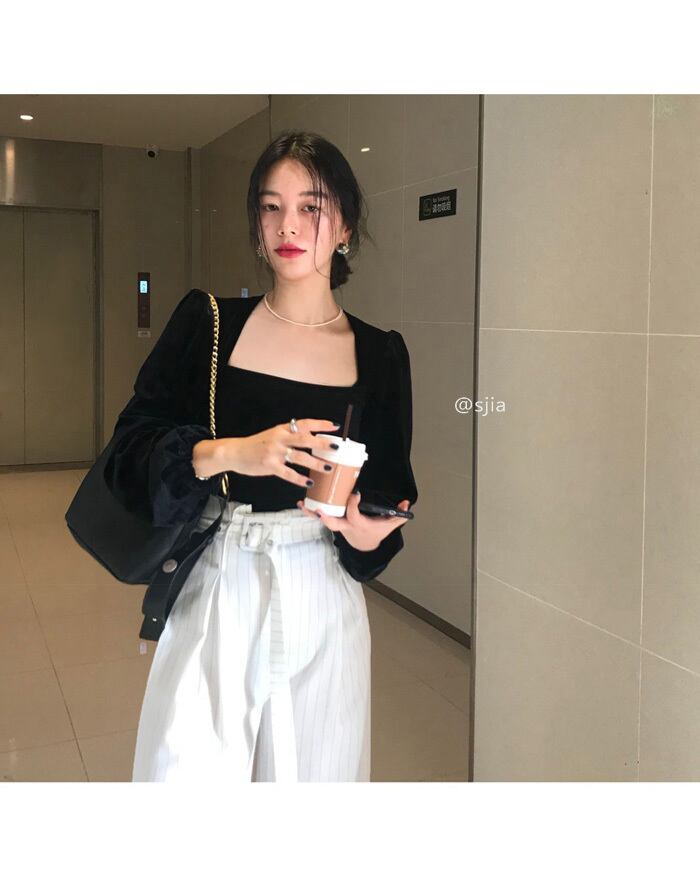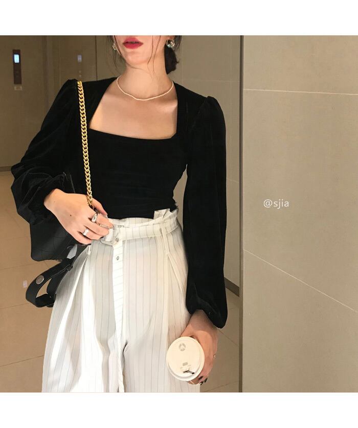 シャツ スタンダードスタイルカラースリーブベルベットトップス レディース レトロ スクウェア クレセントシティ88711154203