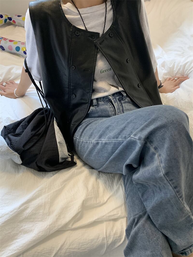 レザージャケット オータムダブルブレストノースリーブルーズ 秋物 クレセントシティ18139509569