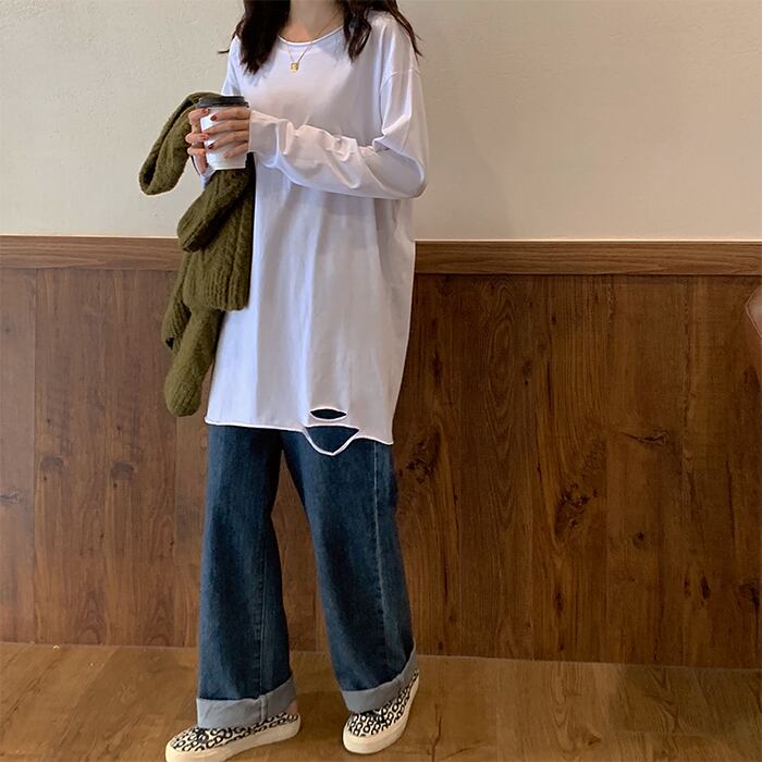 オータムTシャツ シャツ 薄手ホワイトプルオーバー トップス ロング 秋物 クレセントシティ32627006916