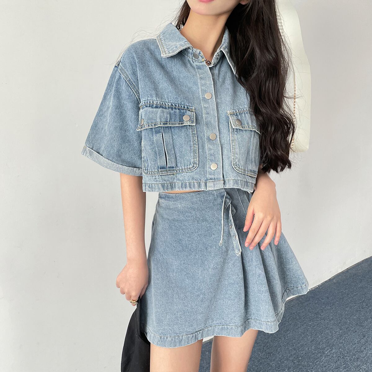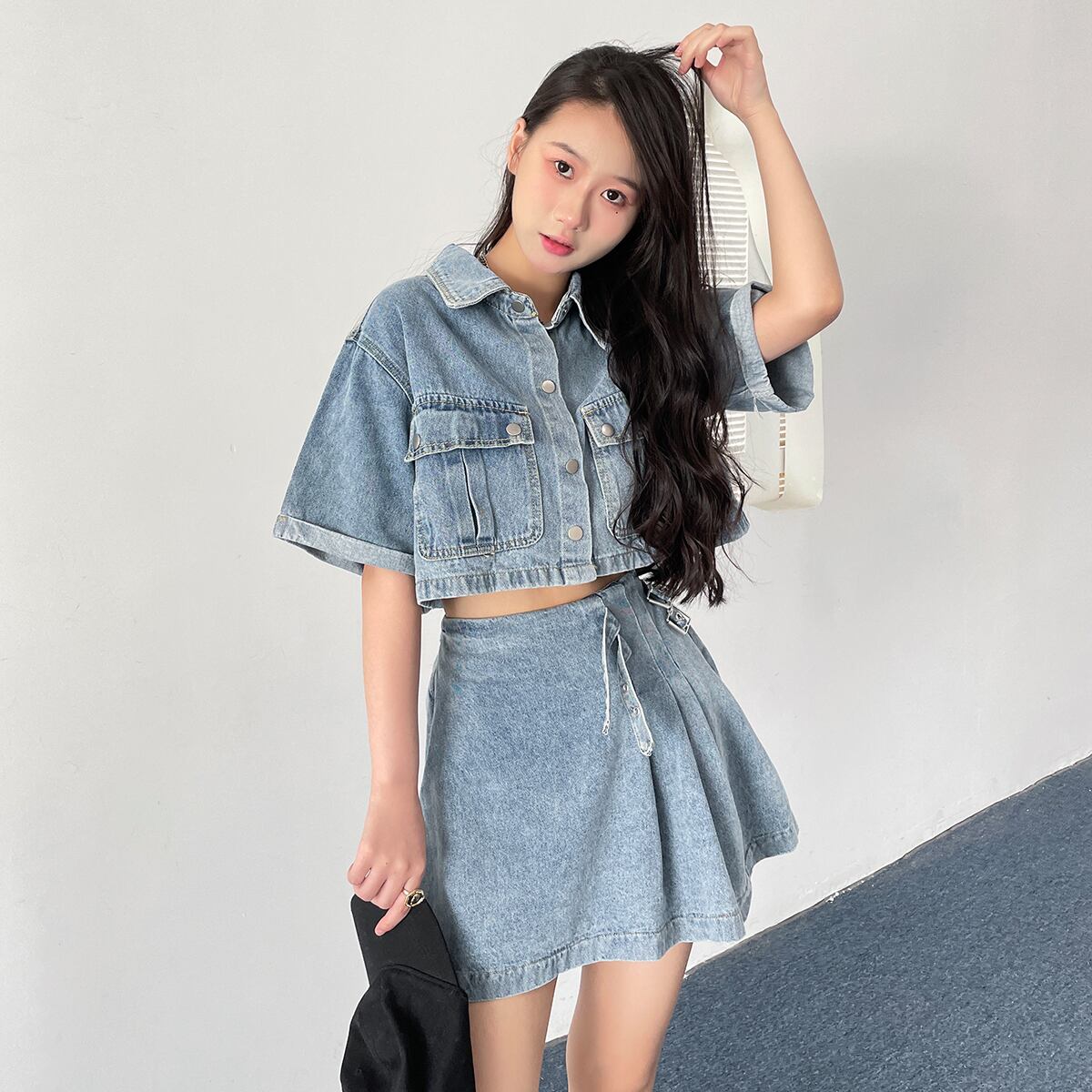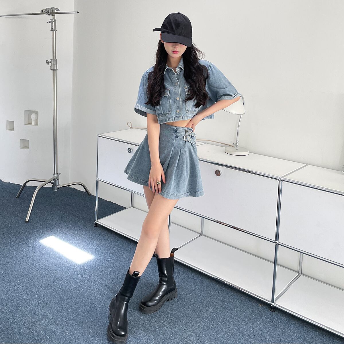 スカート サマー薄手ジャケット ウェストプリーツAラインショートセット ストリート 夏物 クレセントシティ63161738984