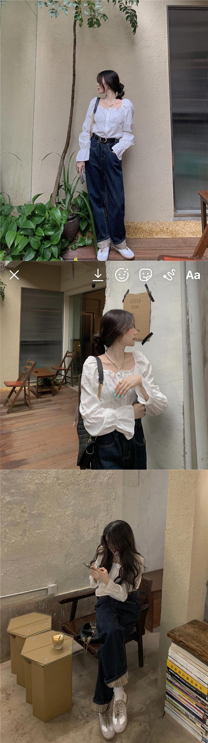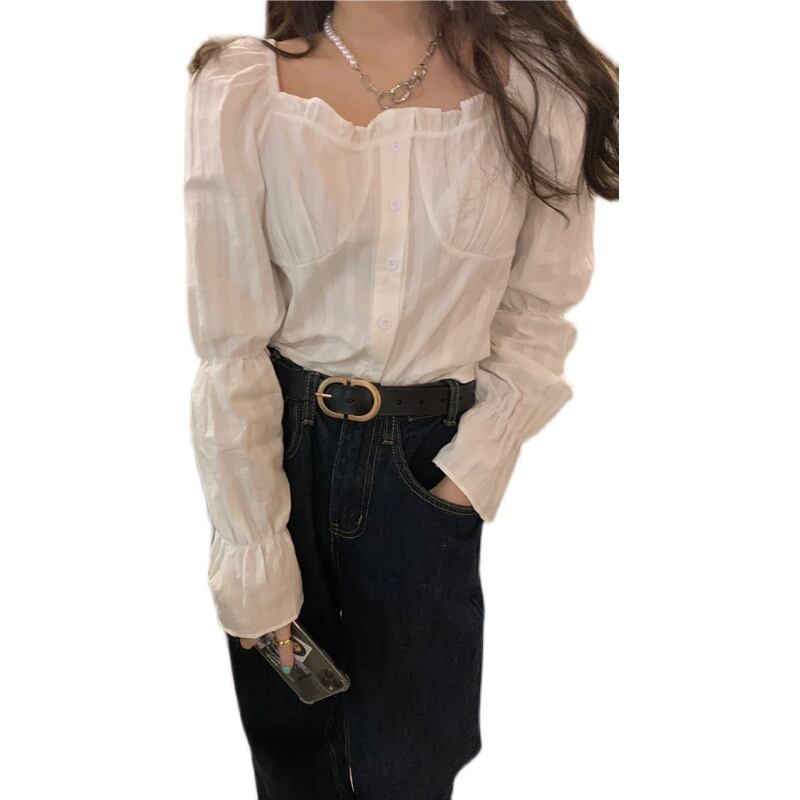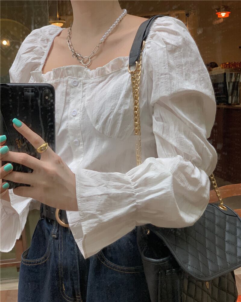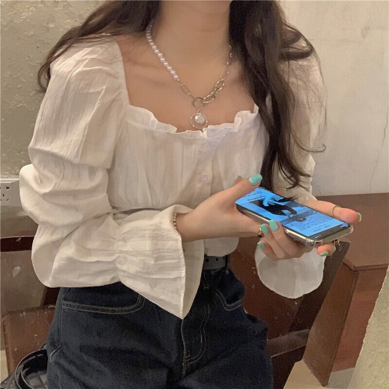 カラーホワイトシャツ スプリングスタイルルーズブラウス ロング 春物 スクウェア クレセントシティ17656465400