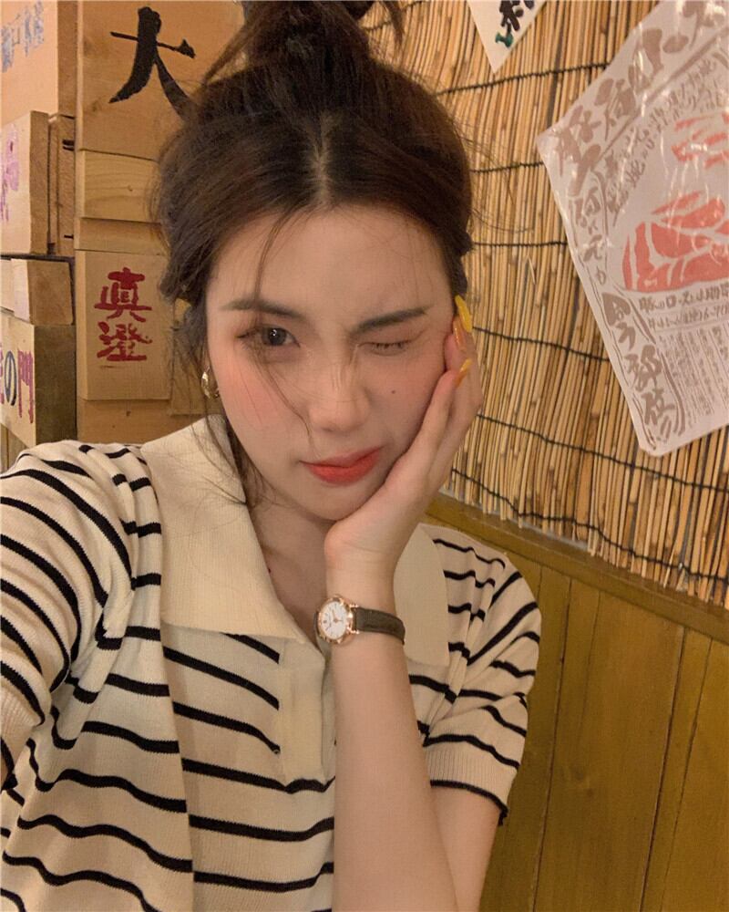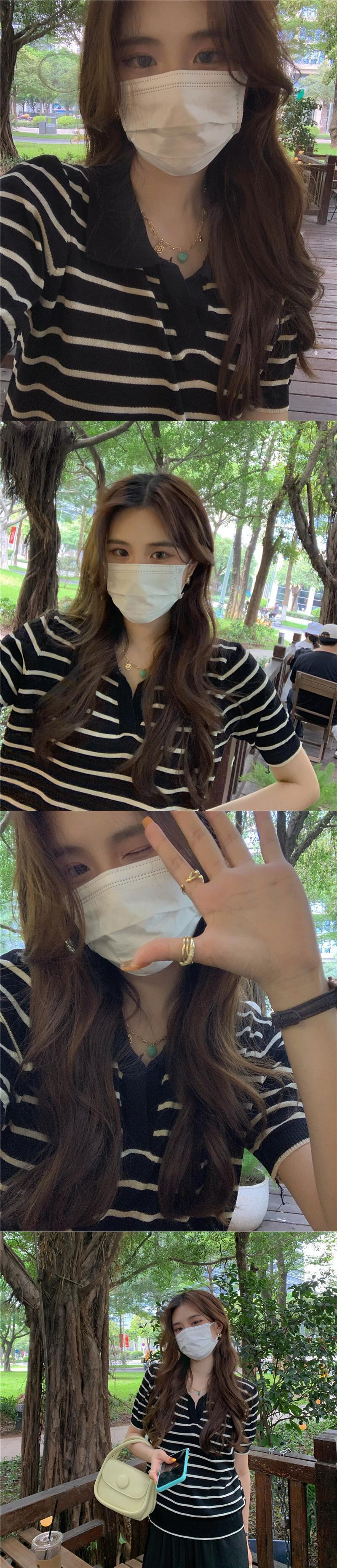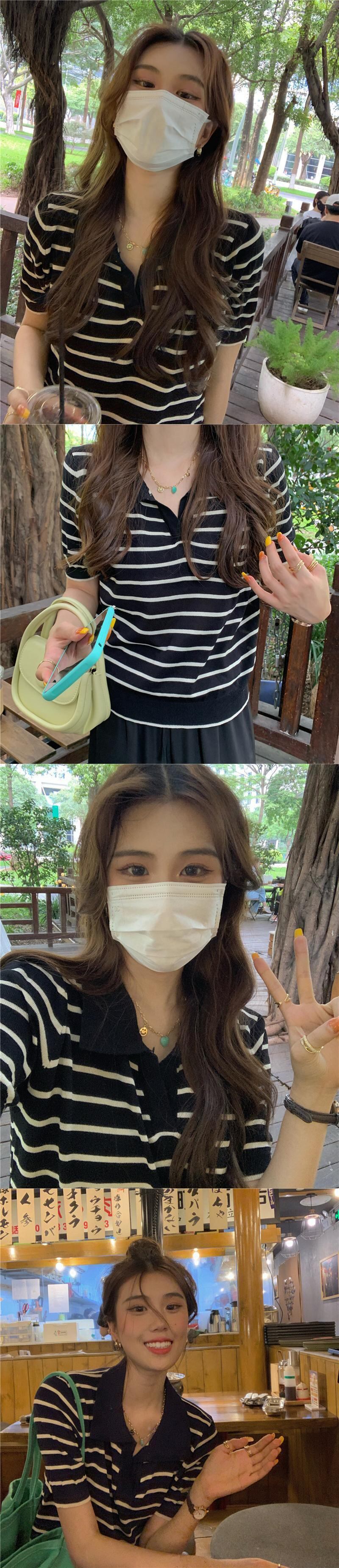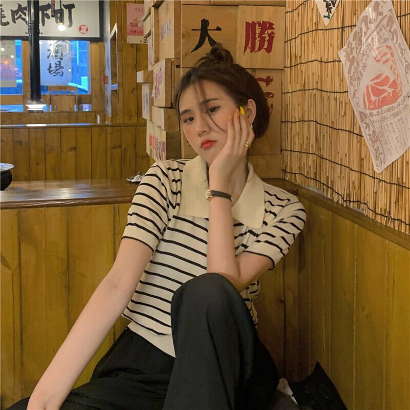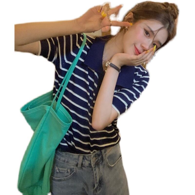 ストライプニットシャツ サマー薄手ルーズTシャツ プルオーバー トップス 夏物 クレセントシティ6221777215