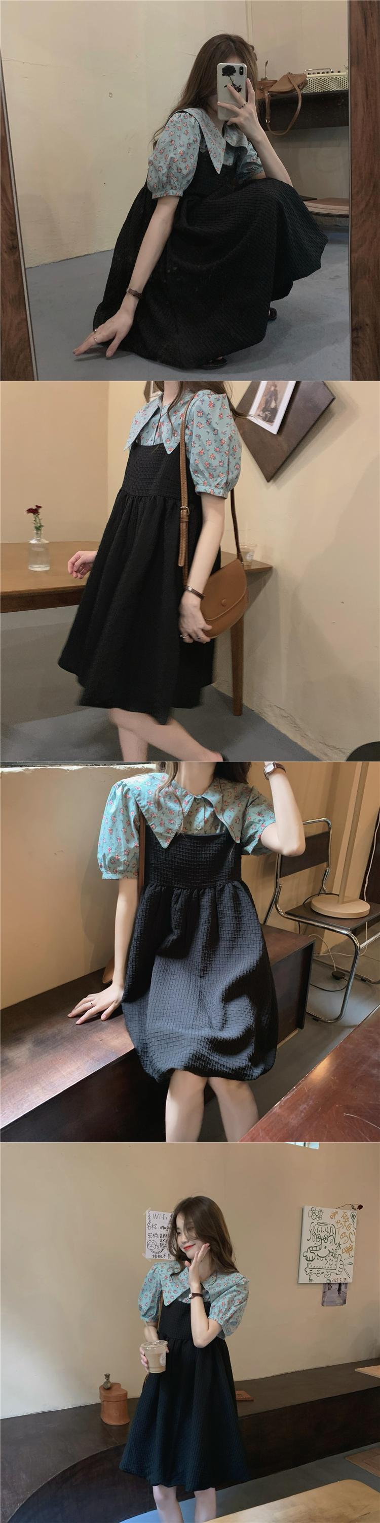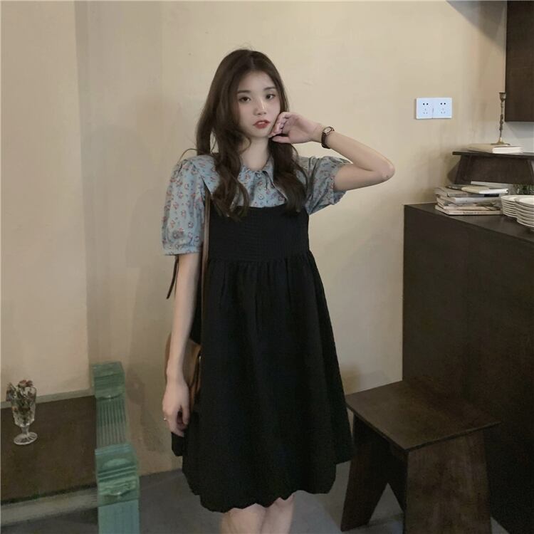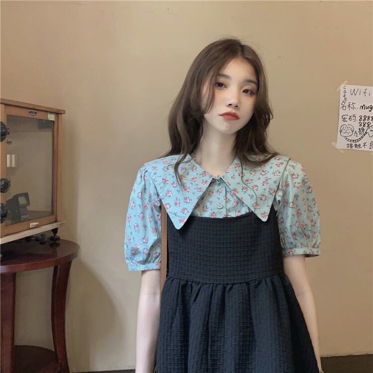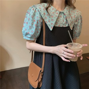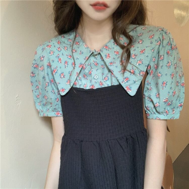 スタンダードカラーフローラルシャツ ブラックドレス レトロ 大人ガーリー スウィート キュート カジュアル 花柄 クレセントシティ70707881807