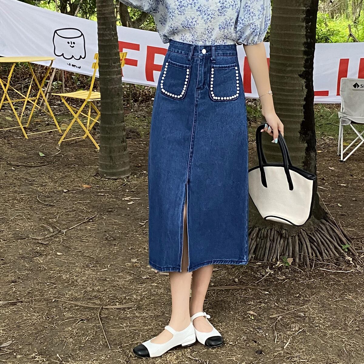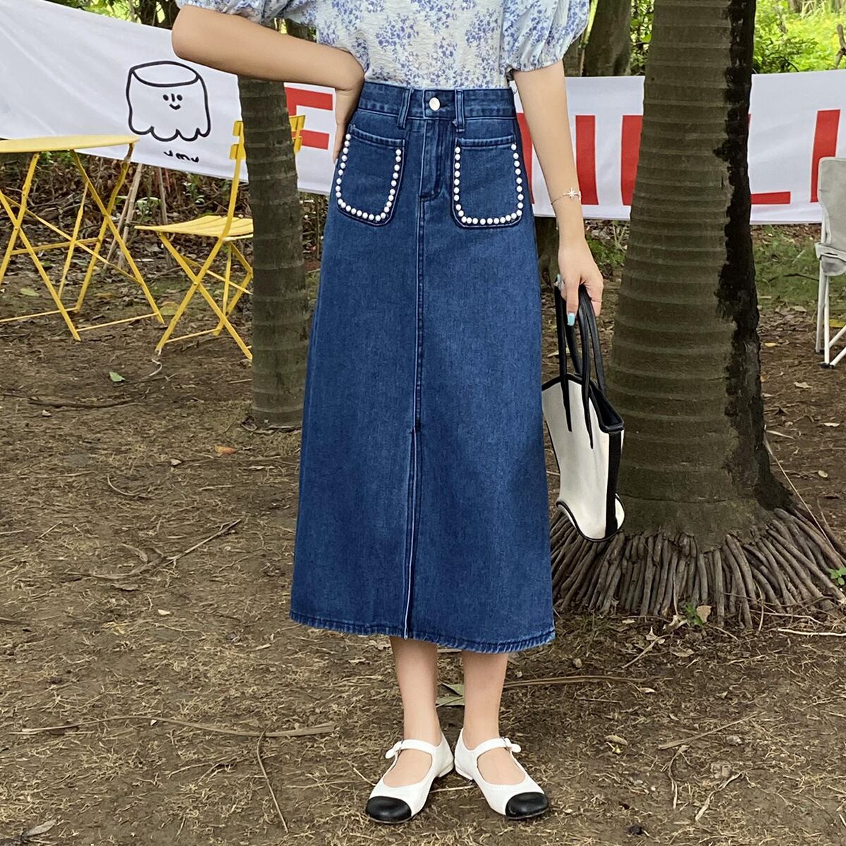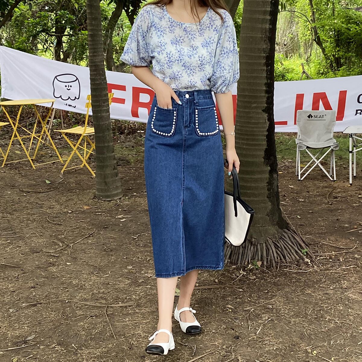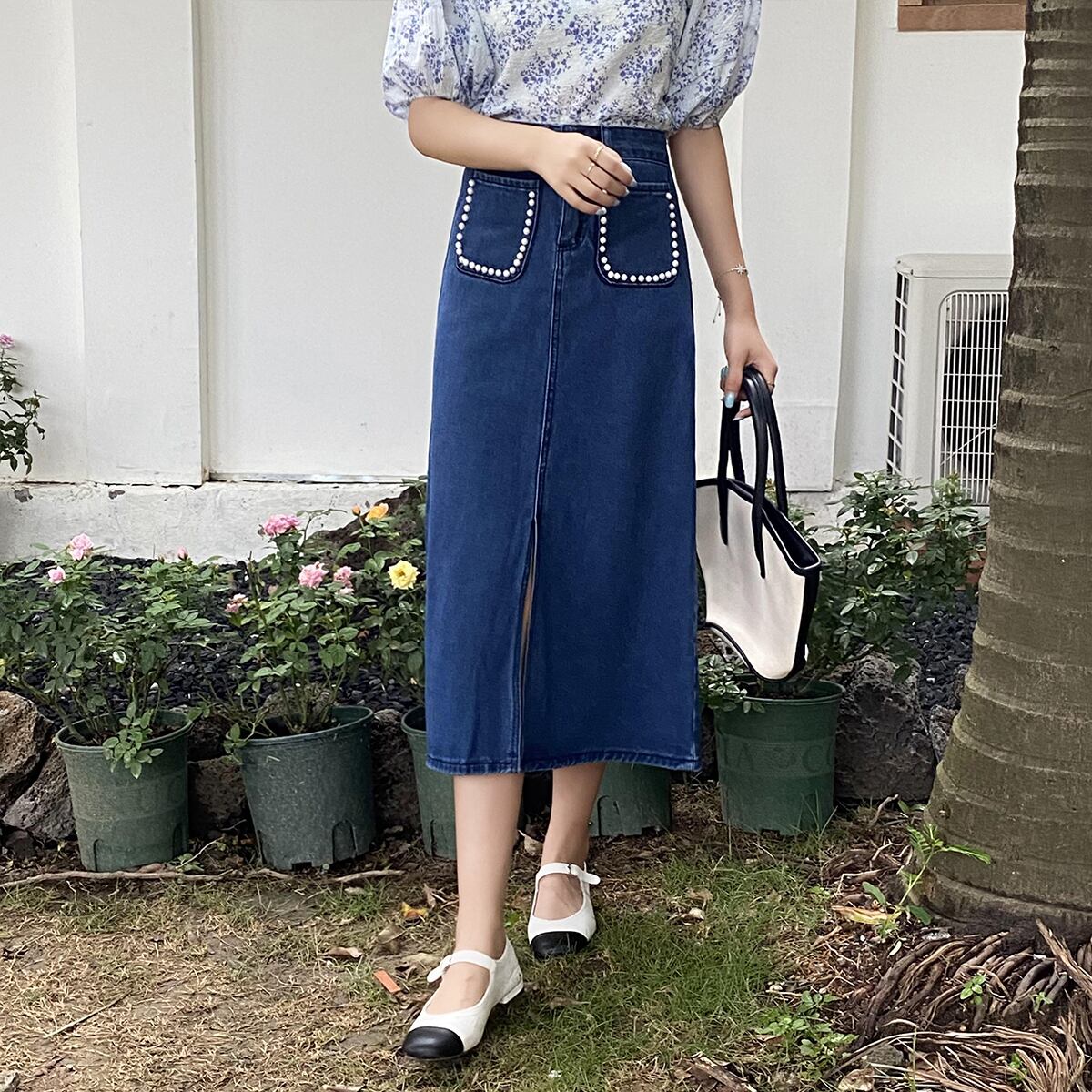 スカート サマースリットロングAライン 夏物 クレセントシティ3059904805