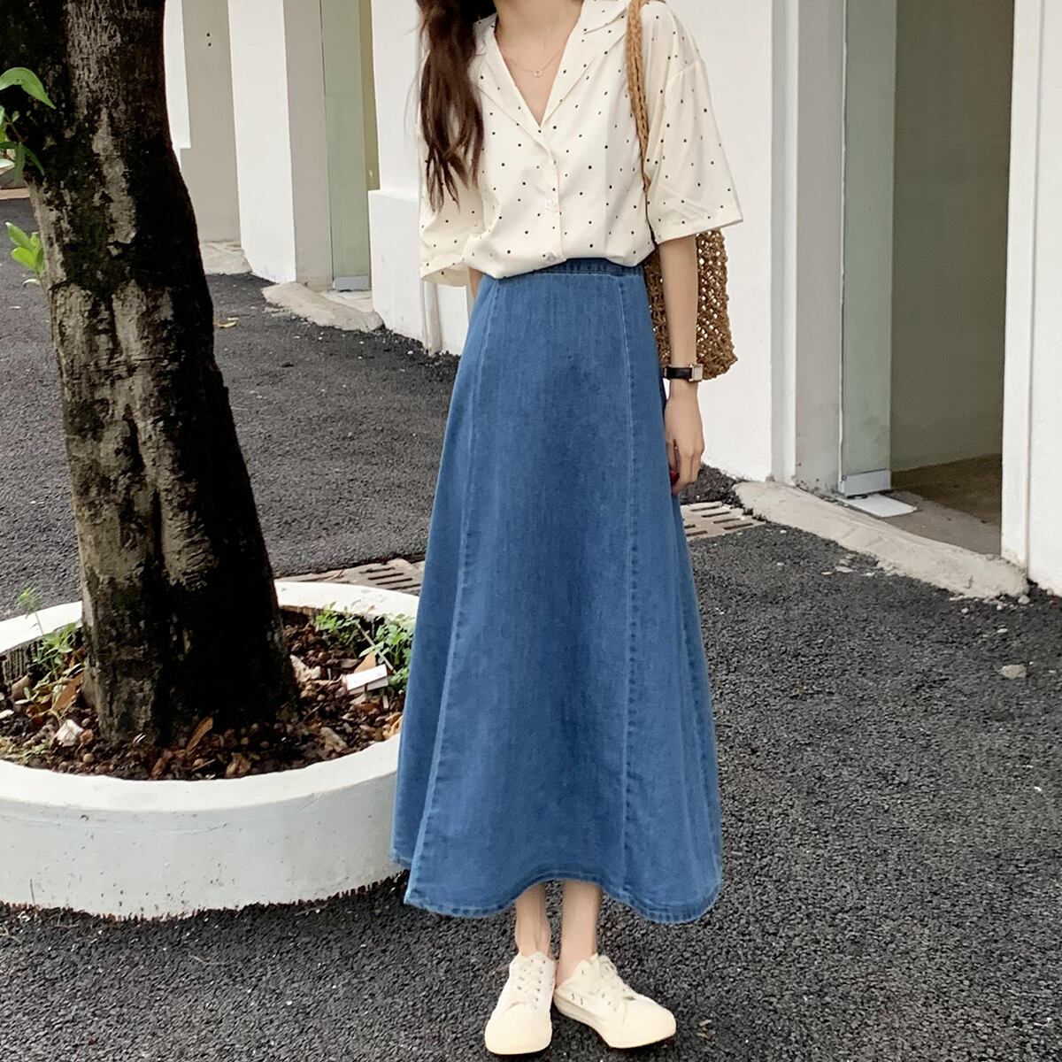 スカート サマースタイルハイウェスト薄手Aライン 大人ガーリー スウィート キュート カジュアル 夏物 クレセントシティ58702679233